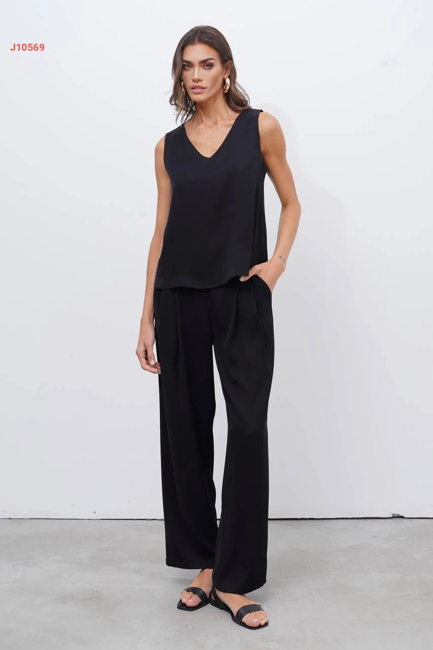 طقم بنطال وكنزة حفر سادة