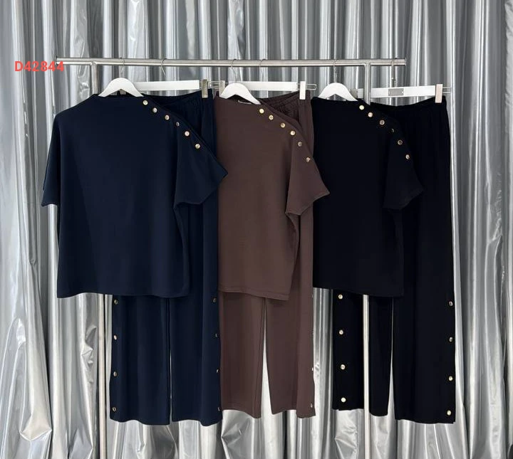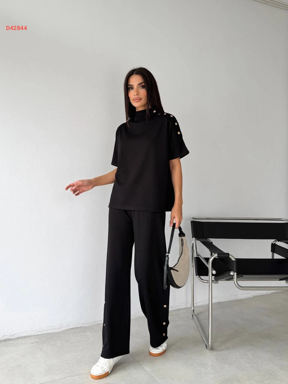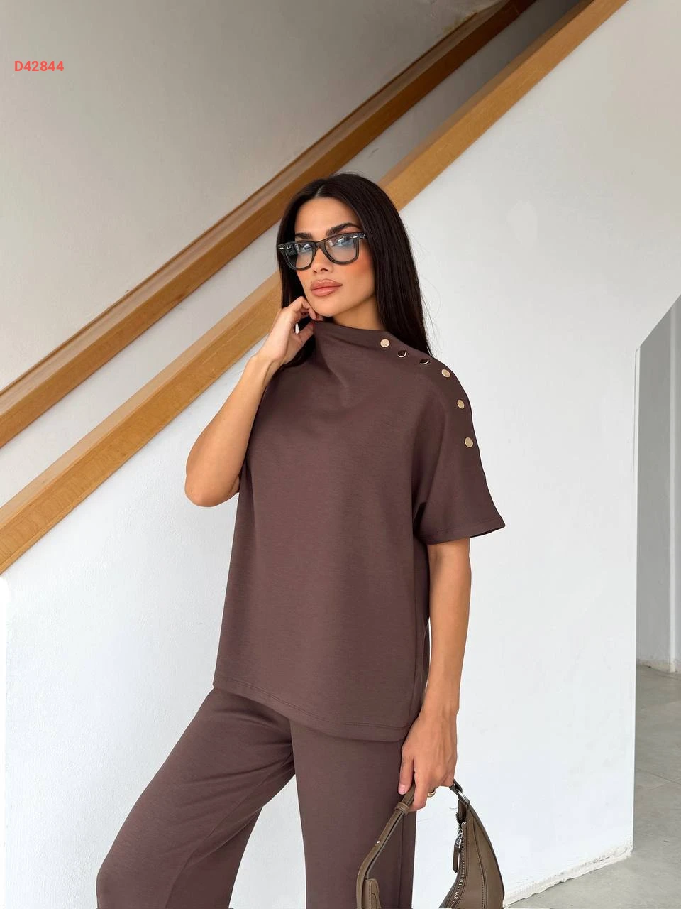 طقم بنطال سبور وتيشرت بأزرار عالكتف