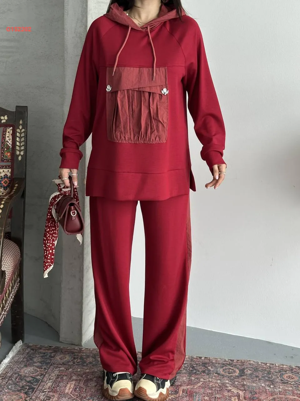 طقم بنطال سبور وكنزة بطاقية