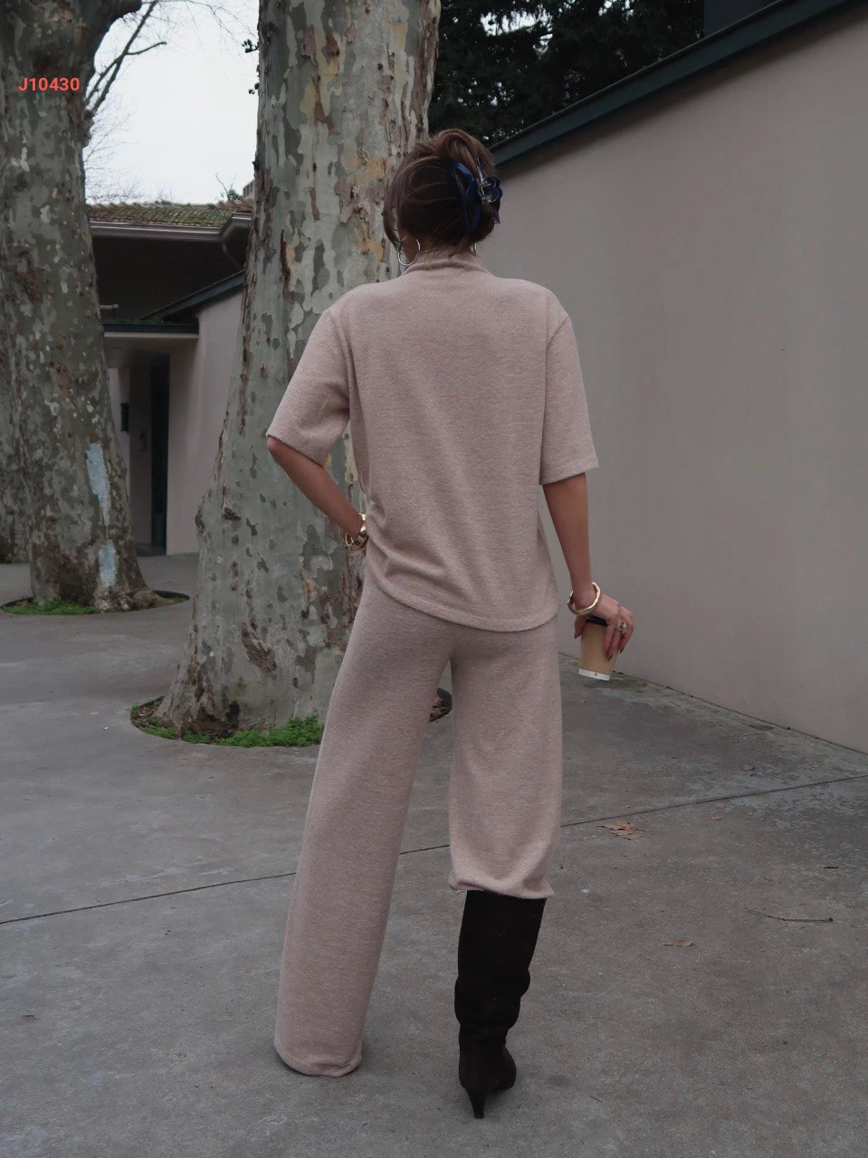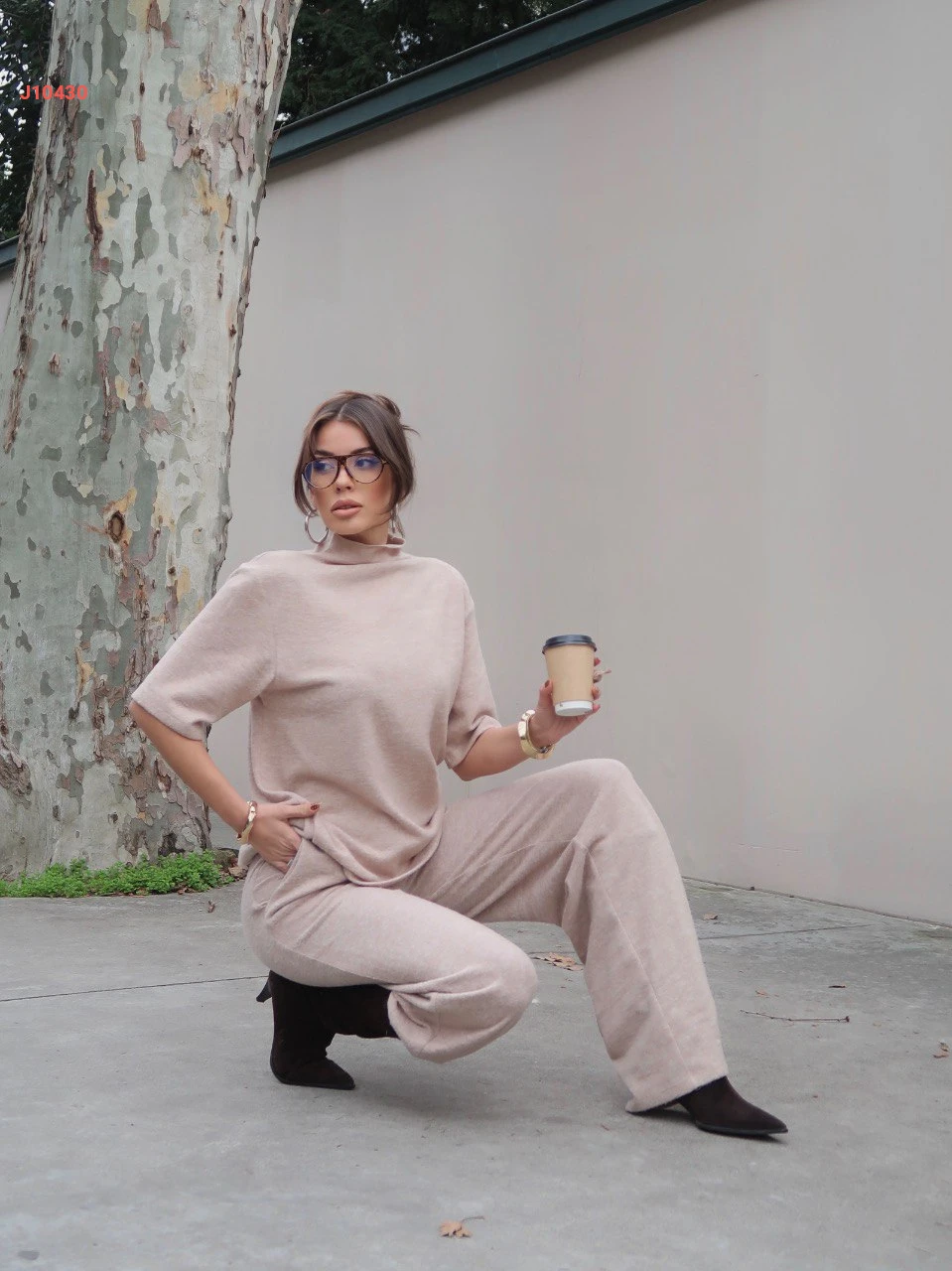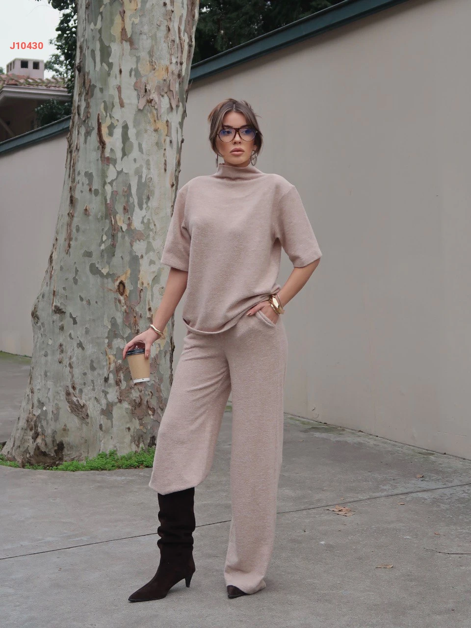 طقم بنطال سبور مع كنزة بأكمام قصيرة