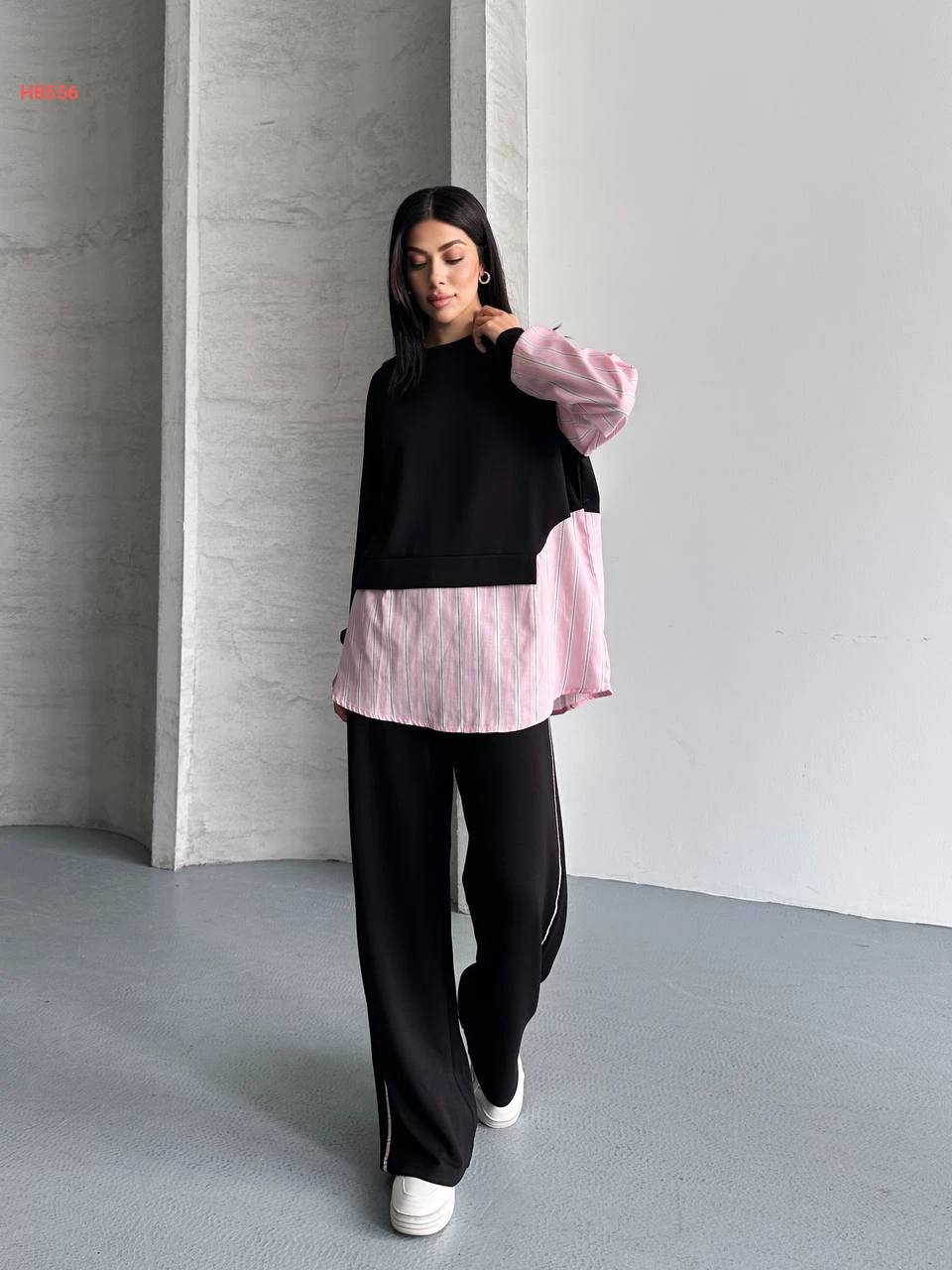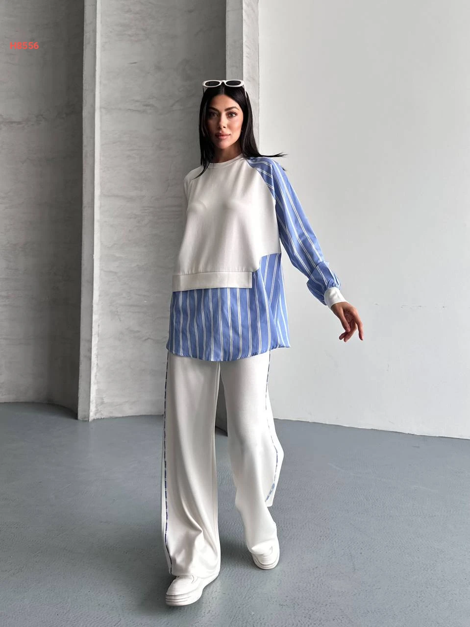 طقم بنطال سبور بتفاصيل قميص مقلم