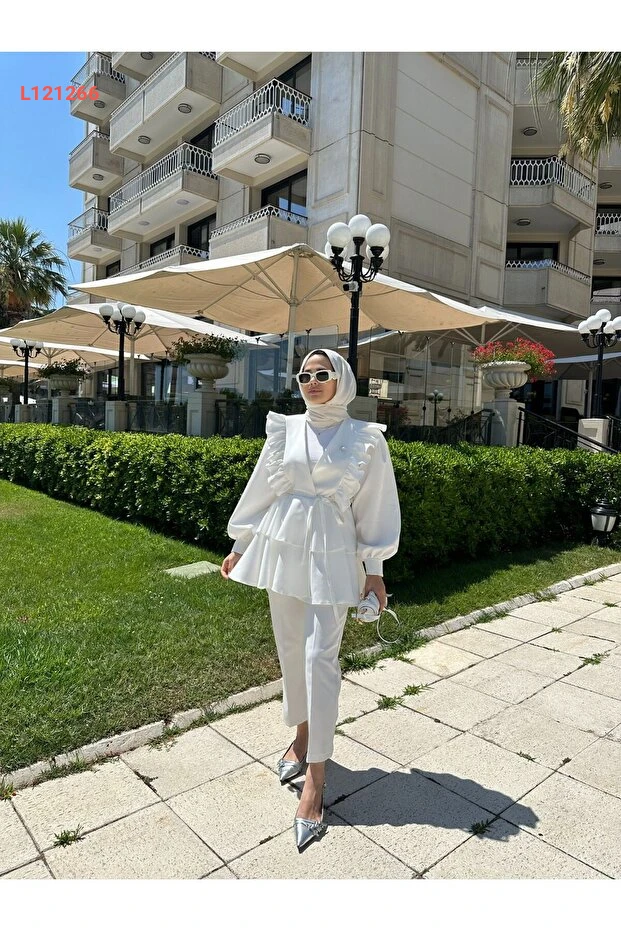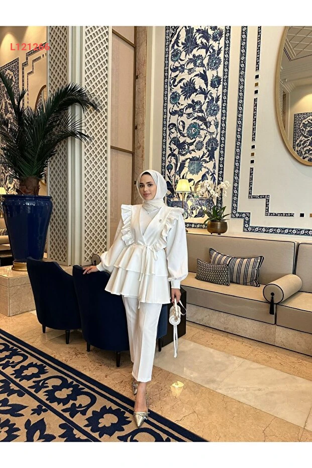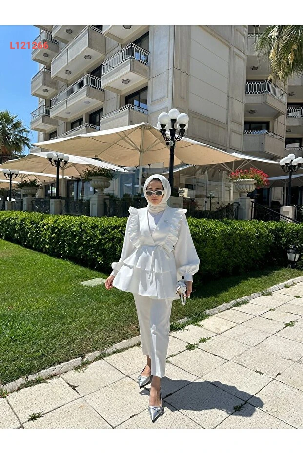 تميّزي بأناقتك مع طقم SSDESİNG Roza الثنائي باللون الأبيض، المصنوع من خامات عالية الجودة لضمان الراحة والتألق. يأتي بتصميم عصري يناسب مختلف المناسبات، مما يجعله الخيار المثالي لإضفاء لمسة من الجاذبية على إطلالتك اليومية.
