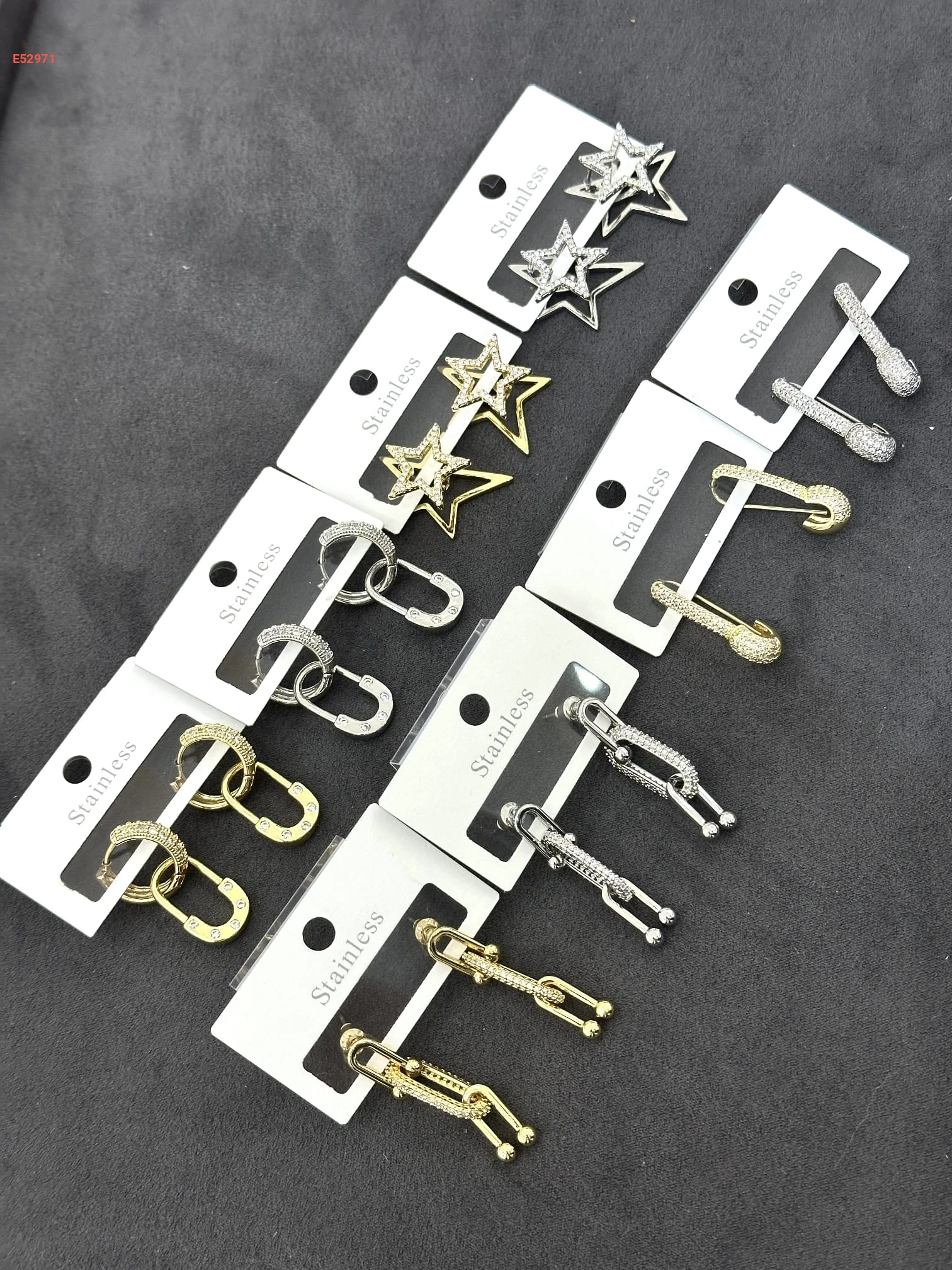 حلق ستانلس مرصع بالالماس الفضي والذهبي