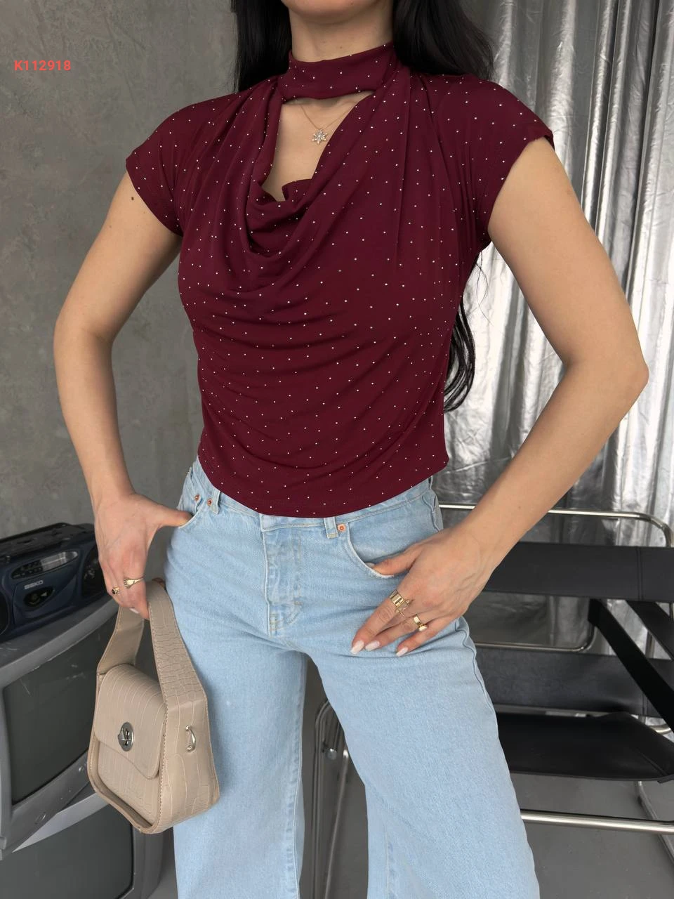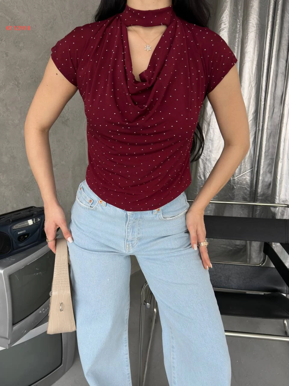 بلوزة حجرية بفتحة مع ياقة ديغاجي