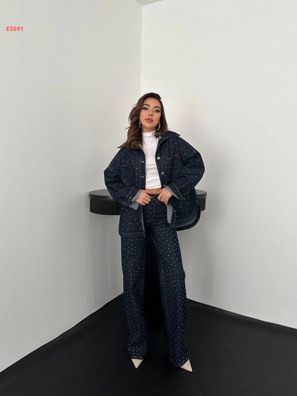 طقم بنطال جينز حجري مع جاكيت