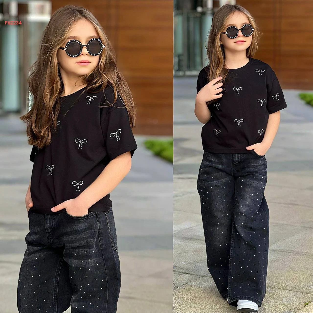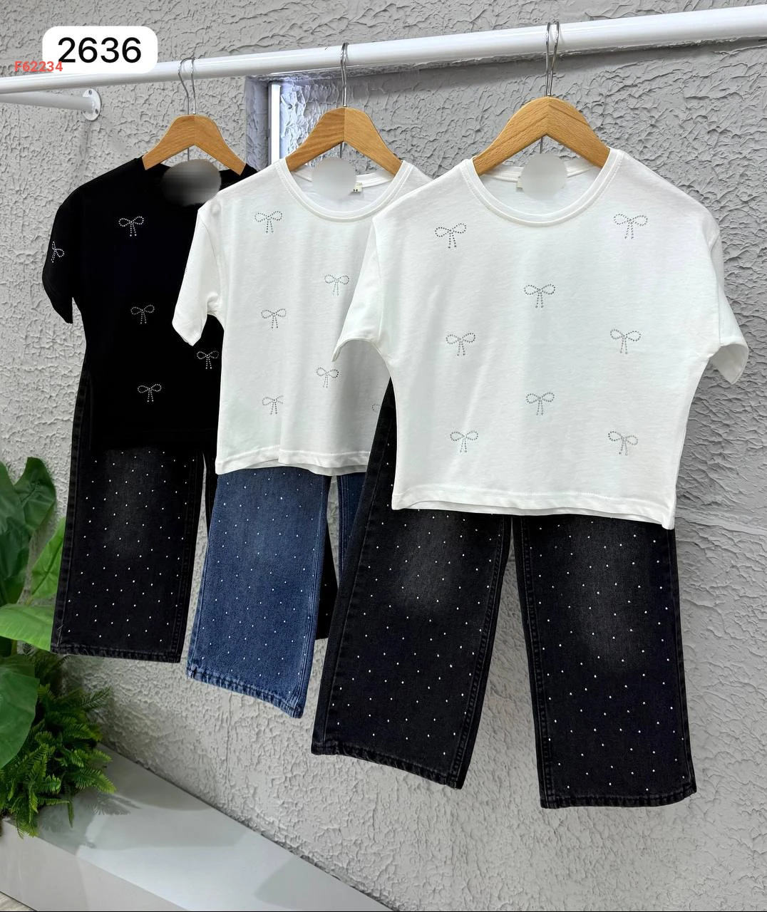 طقم بنطال جينز حجري مع تيشرت