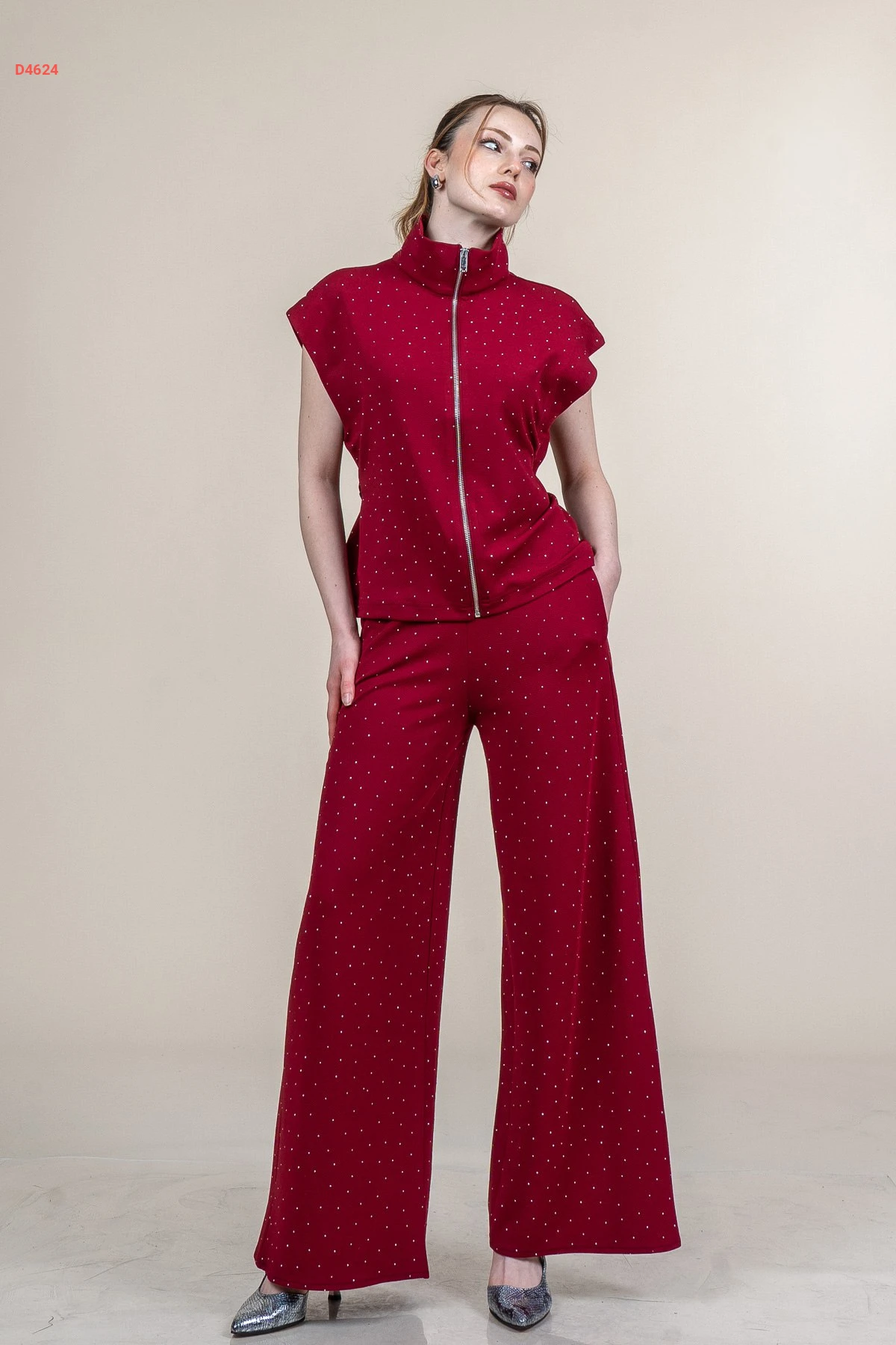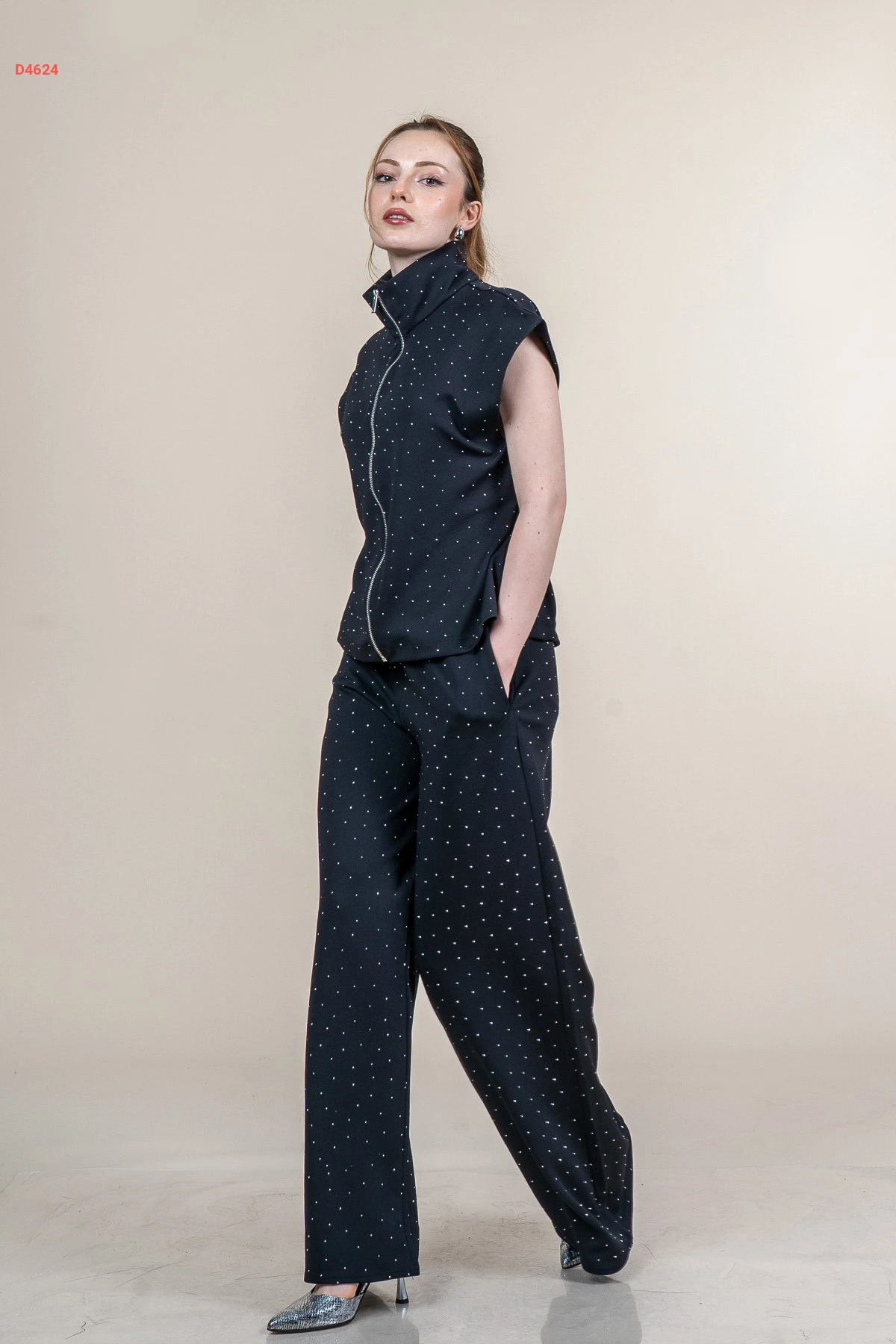 طقم بنطال حجري مع يلك بسحاب