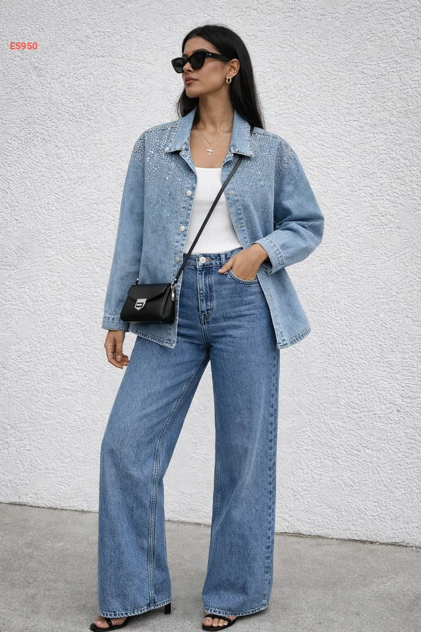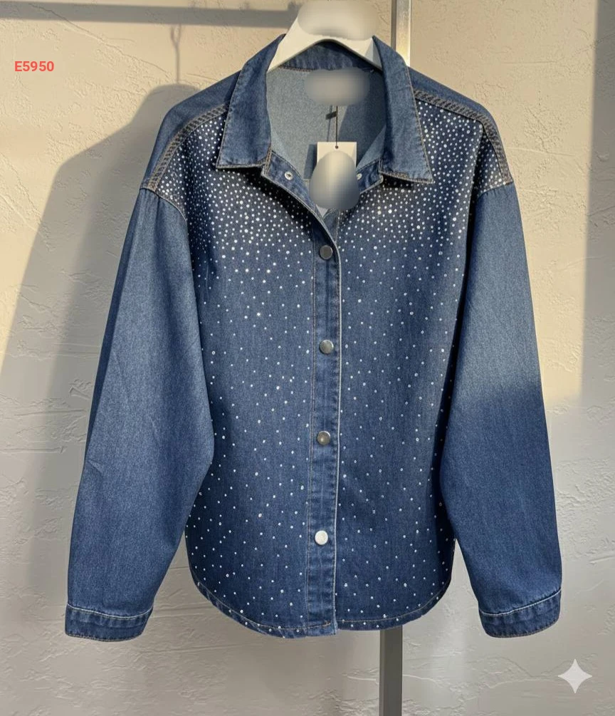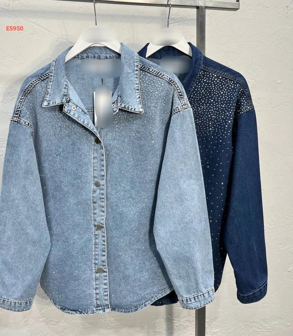 قميص جينز حجري مرصع