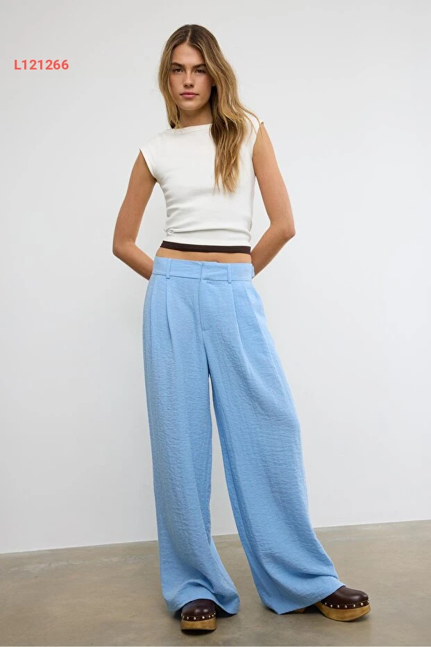 استمتع بالأناقة والراحة مع بنطال ستراديفاريوس الواسع القصة، المصنوع من مزيج الكتان القابل للتعديل. يتميز بتفاصيل الأزرار العصرية وتصميمه المتجدد الذي يمنحك مظهراً أنيقاً يناسب جميع المناسبات. اجعلي إطلالتك تتميز بالجاذبية والراحة في كل خطوة!