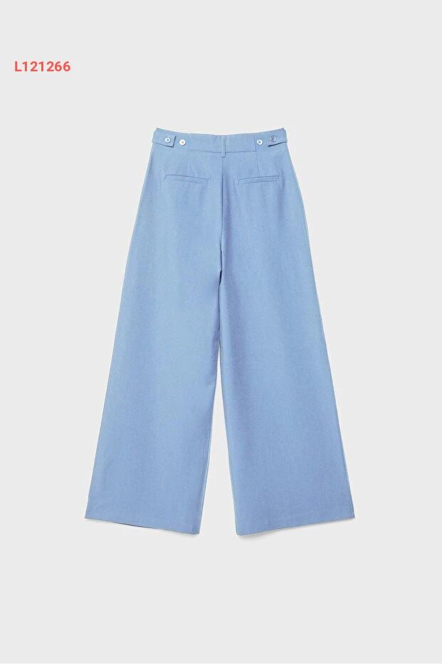 بنطلون واسع الساقين قابل للتعديل من قماش الكتان مع أزرار من ستراديفاريوس
