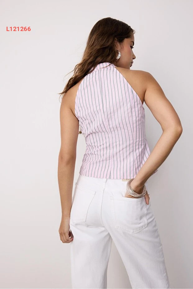 استمتع بأناقة لا مثيل لها مع بلوزة Stradivarius ذات حمالات العنق، التي تجمع بين تصميم الـ qipao التقليدي ولمسة عصرية مميزة. تضفي تفاصيلها الفريدة ولمعتها الناعمة لمسة سحرية على إطلالتك، مما يجعلها الخيار المثالي للمناسبات الخاصة أو السهرات الأنيقة. ارتديها مع إكسسوارات بسيطة لتكمل إطلالتك الجذابة.