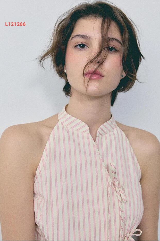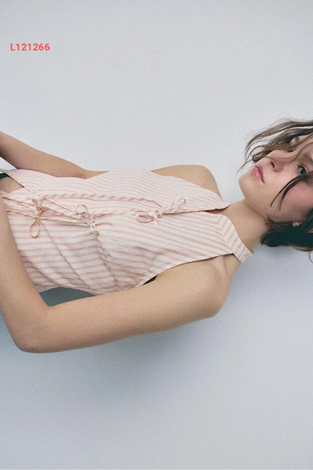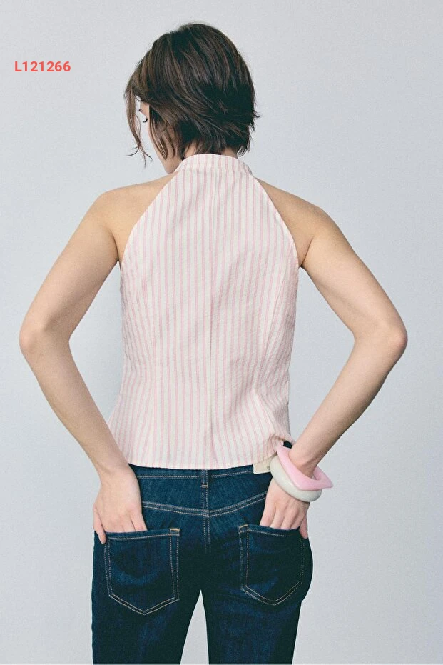 استمتع بإطلالة أنيقة ومميزة مع توب Stradivarius بتصميم هالتر وياقة تشبه القيباء. تجمع هذه القطعة بين الأناقة العصرية والراحة، مما يجعلها مثالية لأي مناسبة تتطلب لمسة من الفخامة. تميز بإطلالة رائعة تضفي سحرًا وأنوثة على كل مظهر.