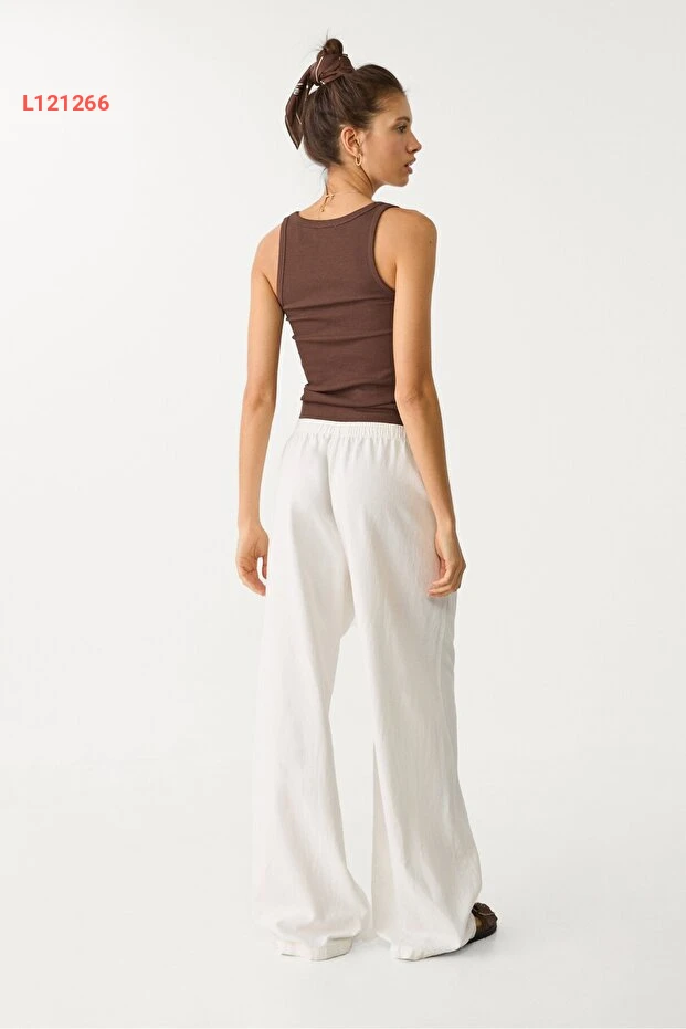 استمتع بأناقة غير تقليدية مع بنطلون ستراديفاريوس الكتان المخلوط بقصة واسعة. يجمع هذا التصميم بين الراحة والأناقة، مما يجعله خيارًا مثاليًا للمناسبات اليومية والخروجات الخاصة. مع خامته عالية الجودة، يضمن لك راحة ودعماً طوال اليوم.