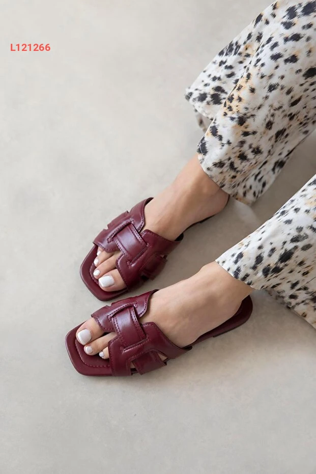 Straswans Huxx Kadın Tek Bant Günlük Deri Terlik Bordo