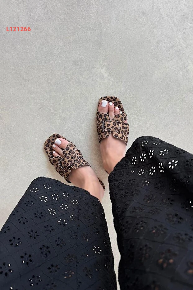 Straswans Huxx Kadın Tek Bant Günlük Deri Terlik Leopar