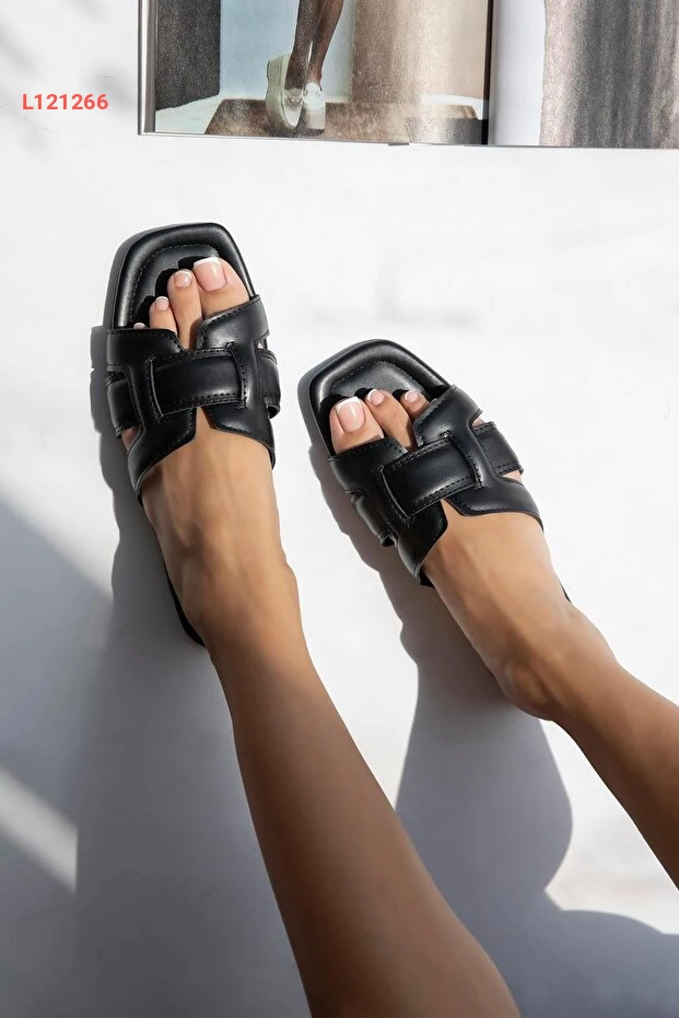 Straswans Huxx Kadın Tek Bant Günlük Deri Terlik Siyah