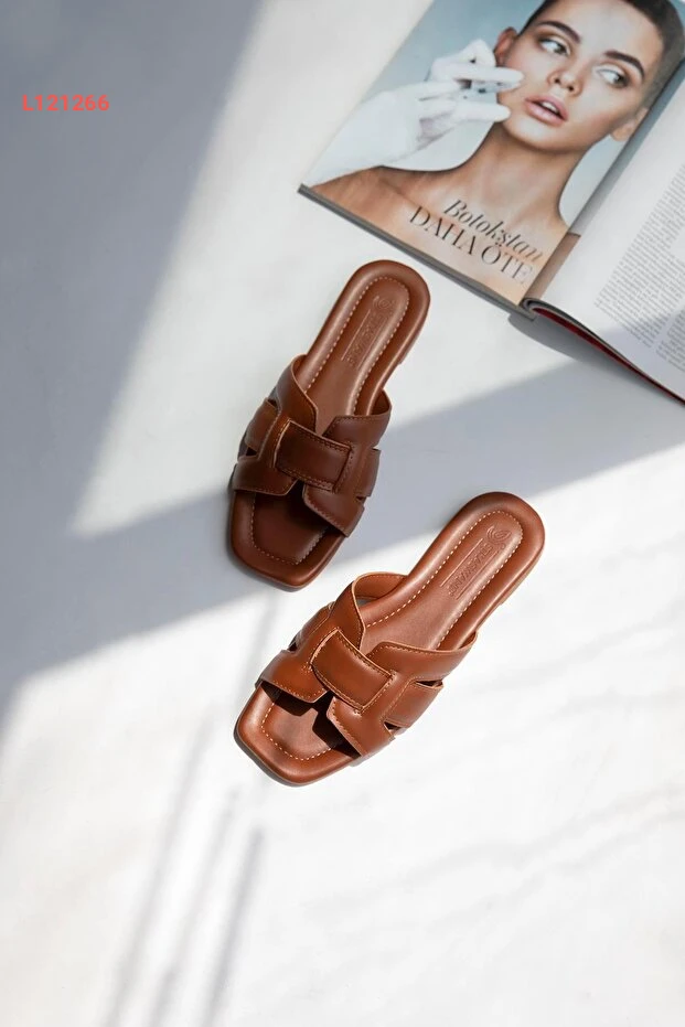 Straswans Huxx Kadın Tek Bant Günlük Deri Terlik Taba