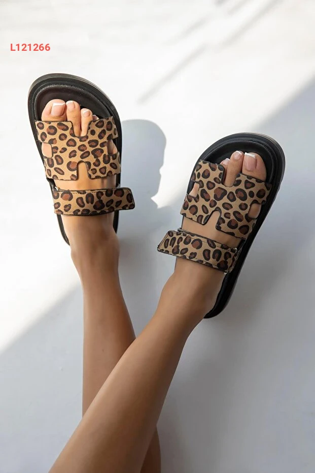 Straswans Palmeira Kadın Cırt Bantlı Deri Terlik Leopar