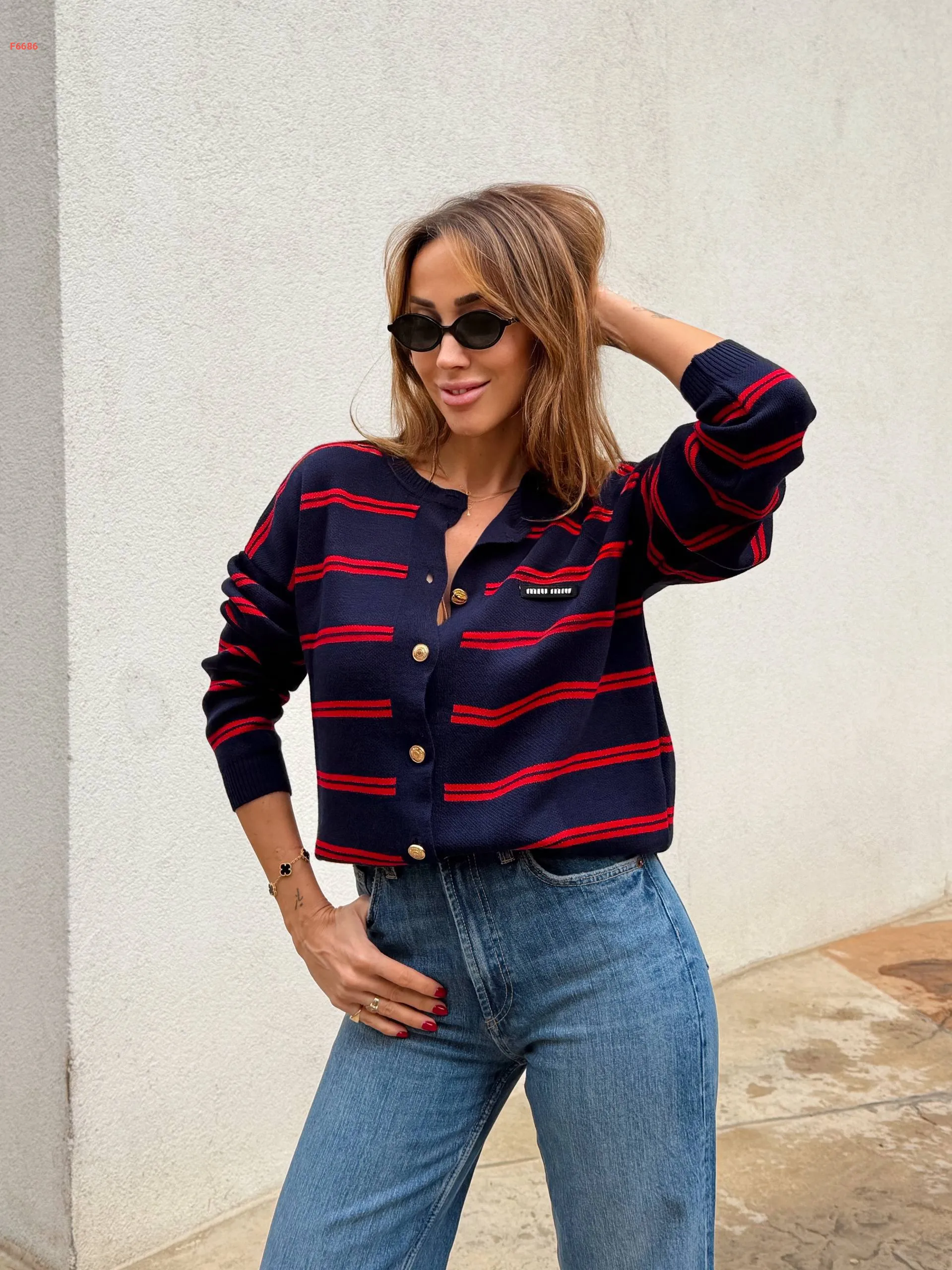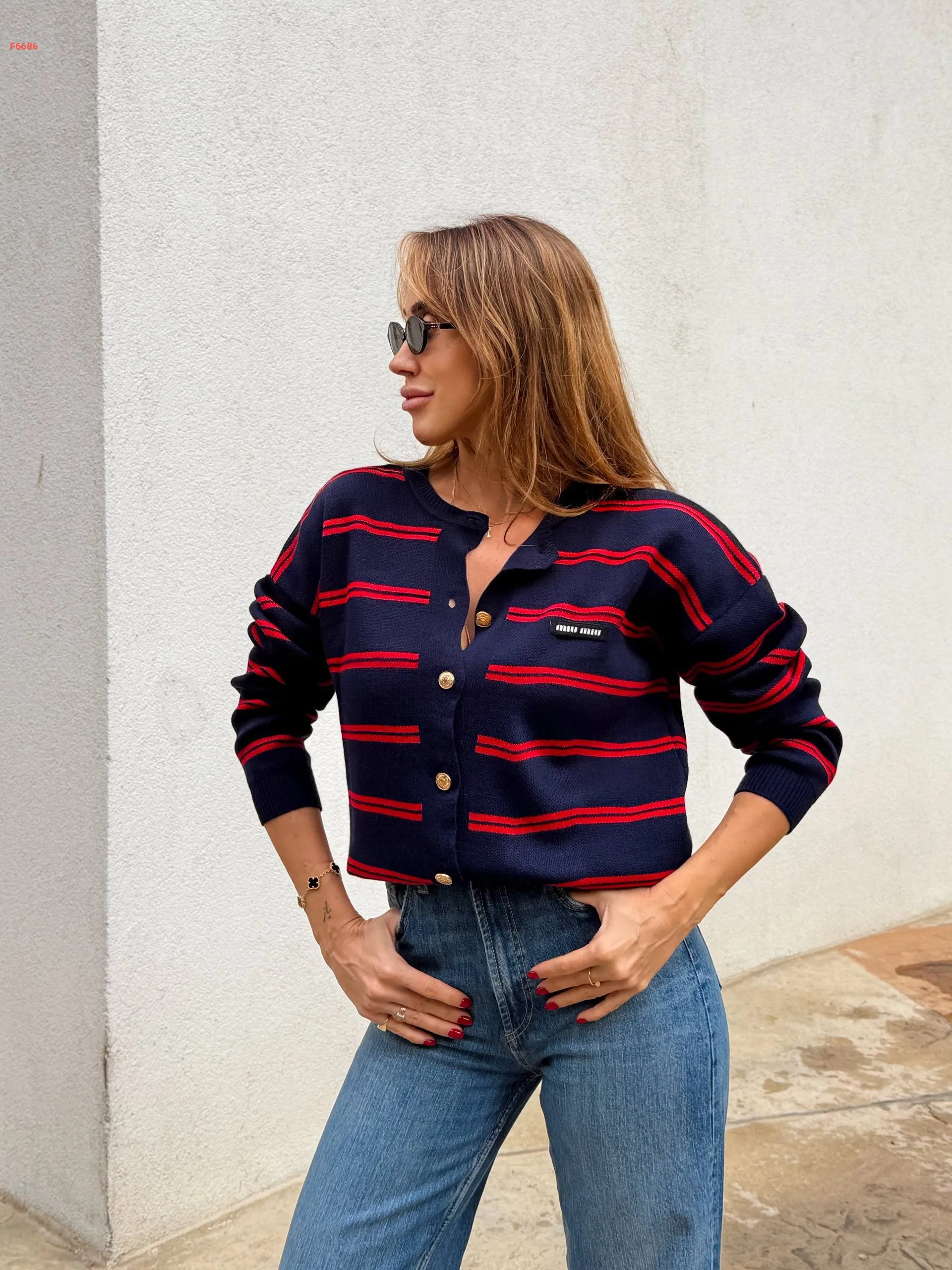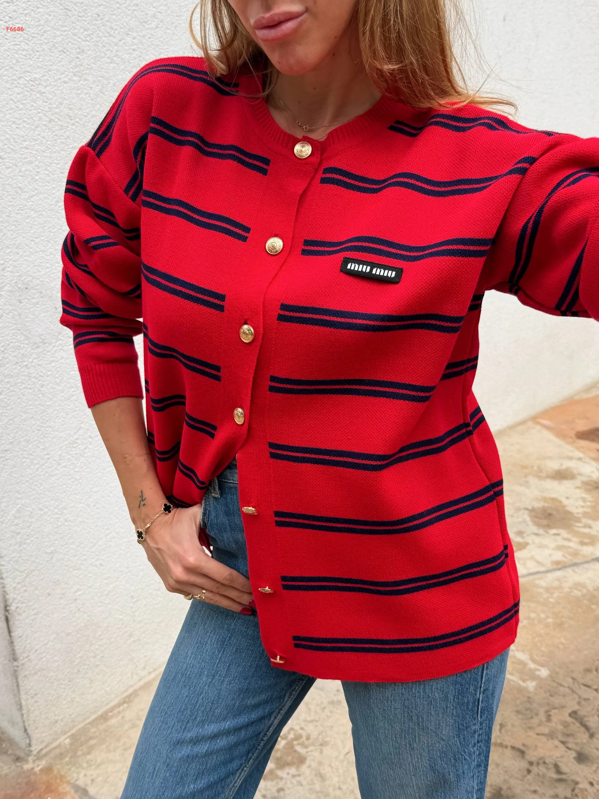 جاكيت تريكو مخطط ماركة