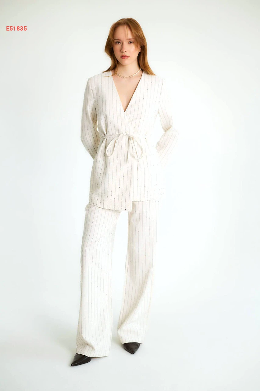 طقم جاكيت مع بنطال مقلم