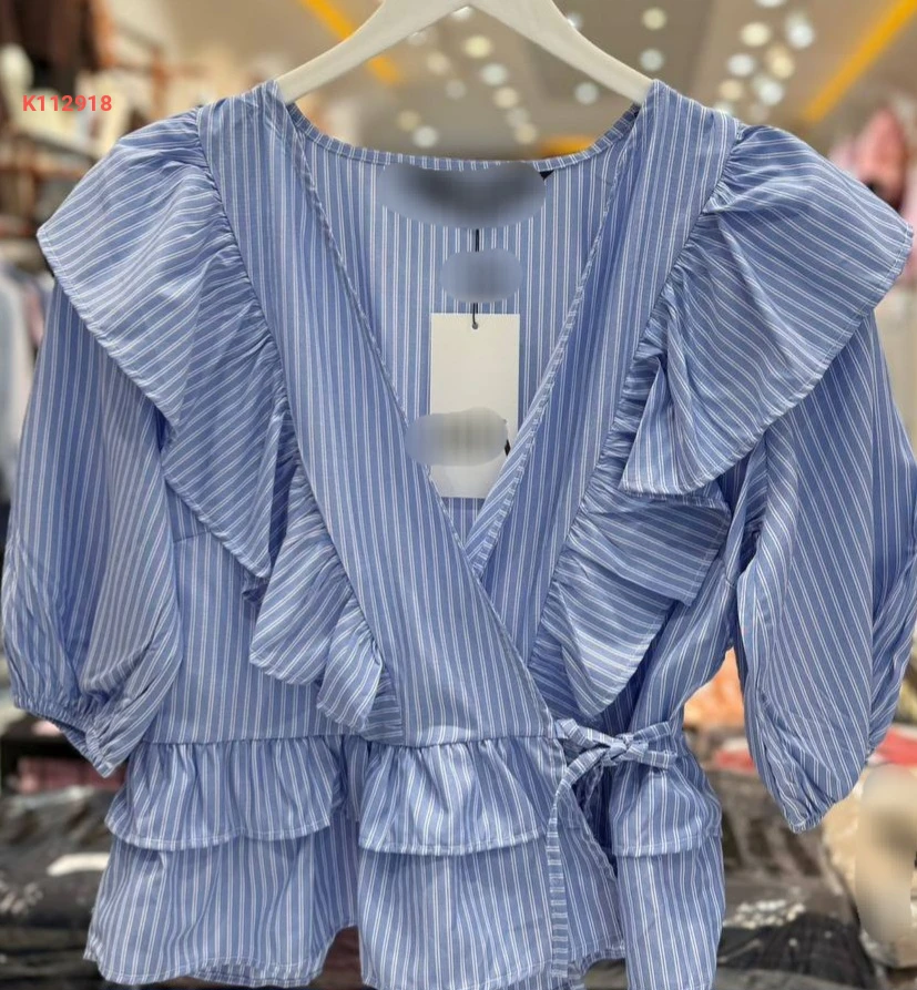 بلوزة مقلمة بتفاصيل كشكش