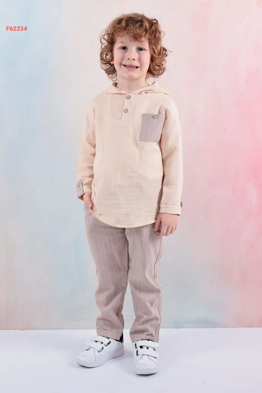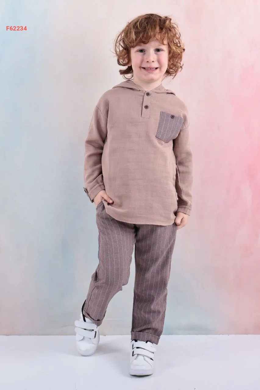 طقم صبياني بنطال وكنزة مخططة