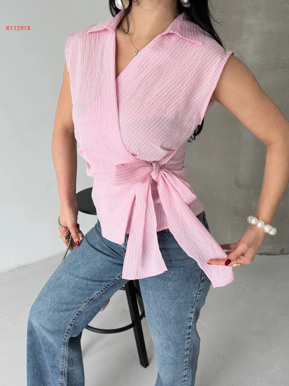 بلوزة حفر مقلمة بربطة جانبية
