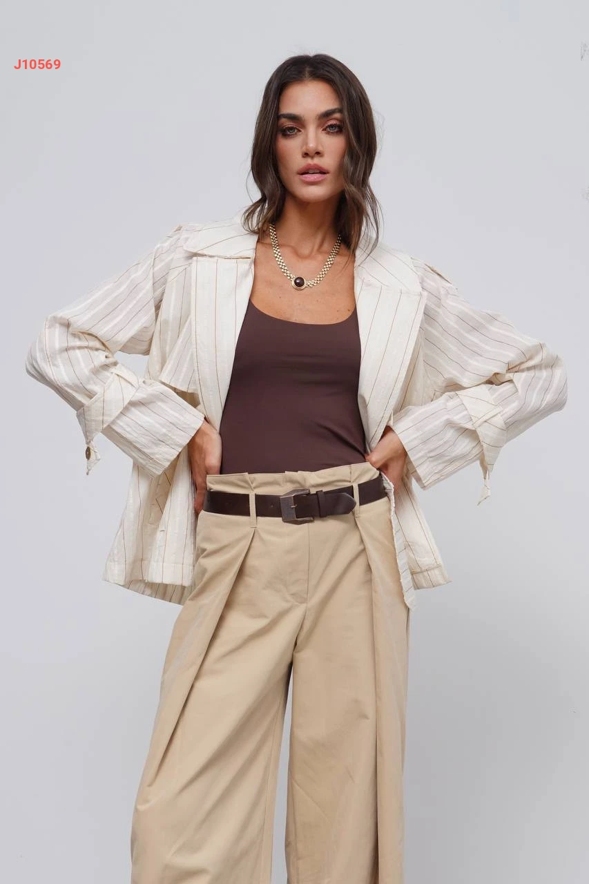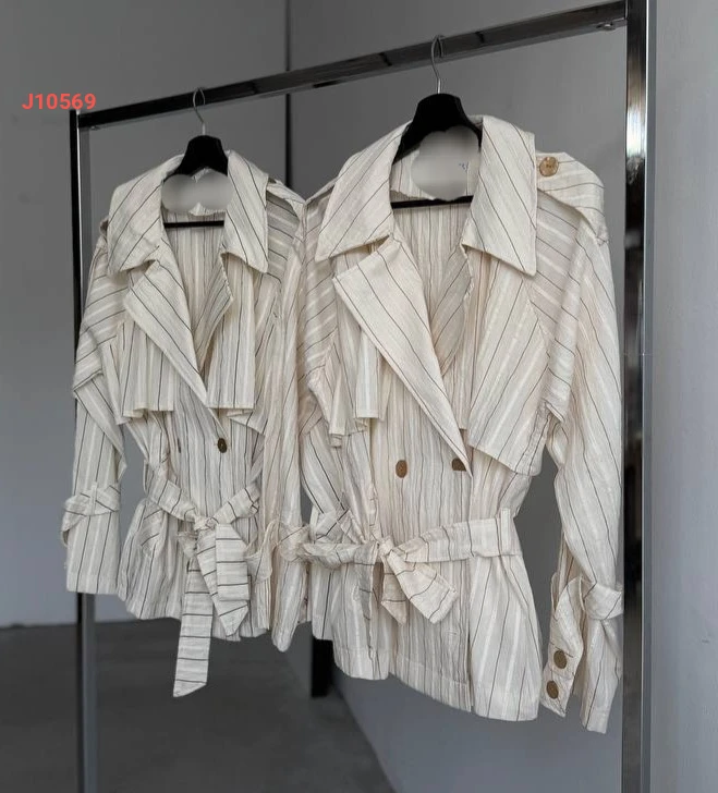 جاكيت مقلم مع زنار
