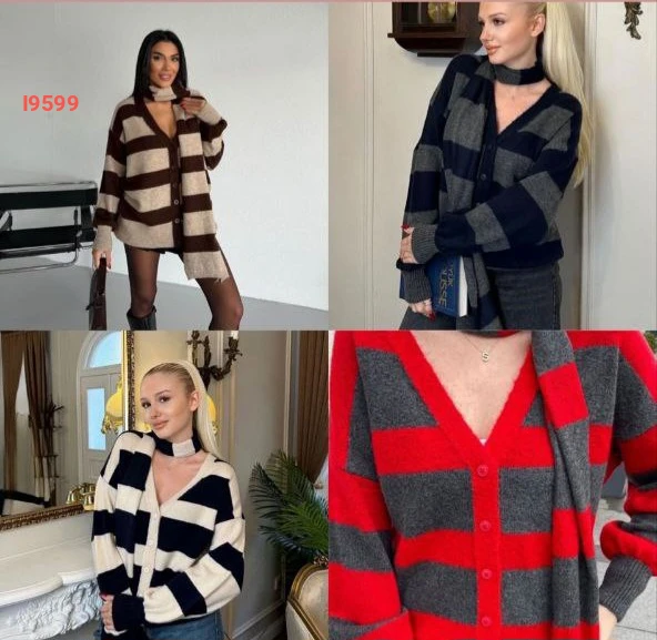 جاكيت تريكو مخطط مع سكارف