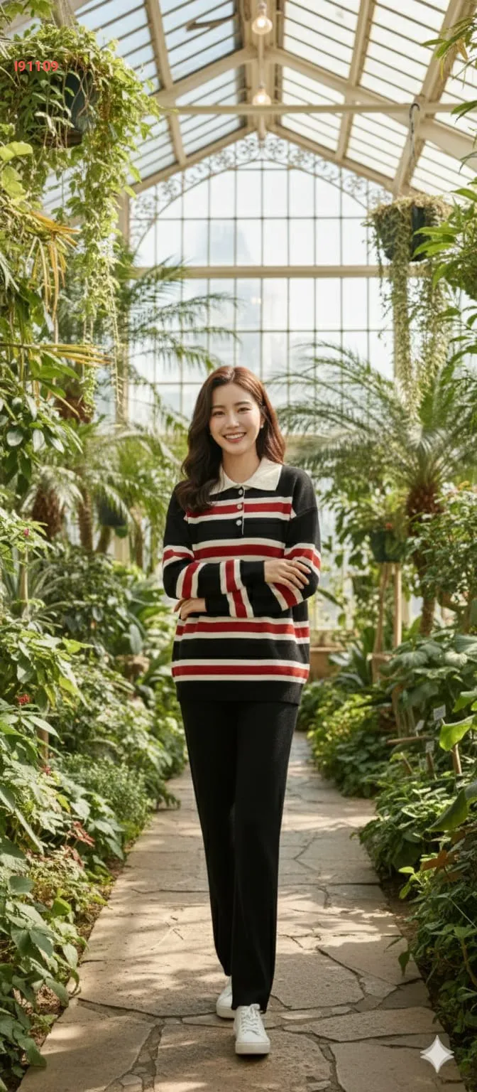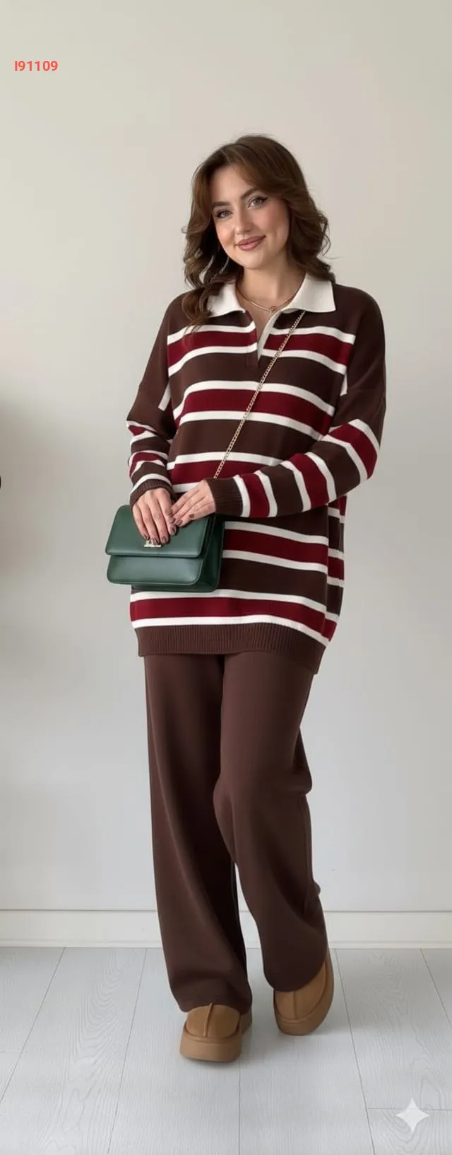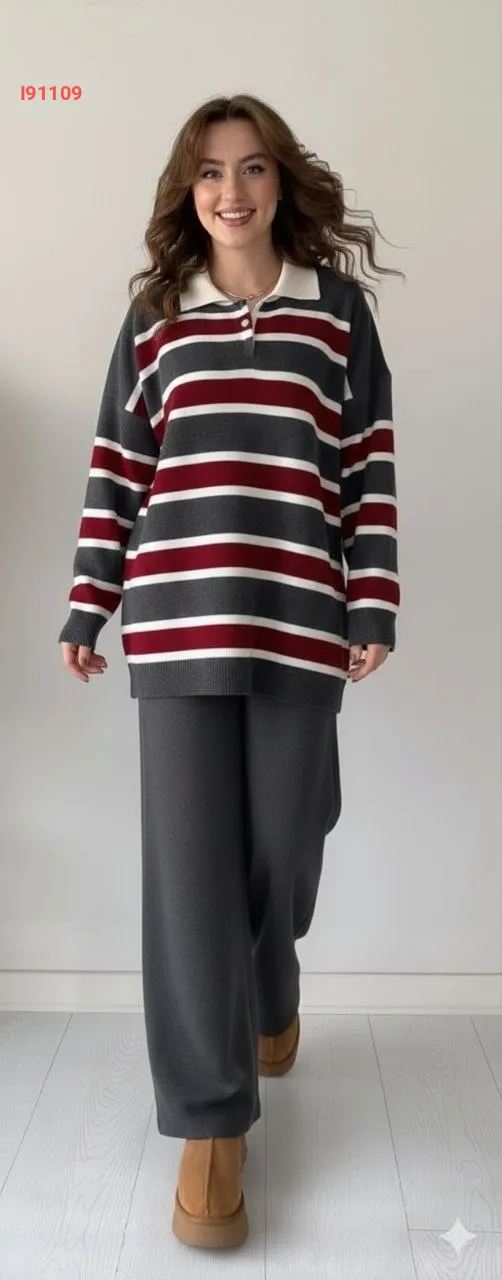 طقم بنطال تريكو وتونيك مخطط