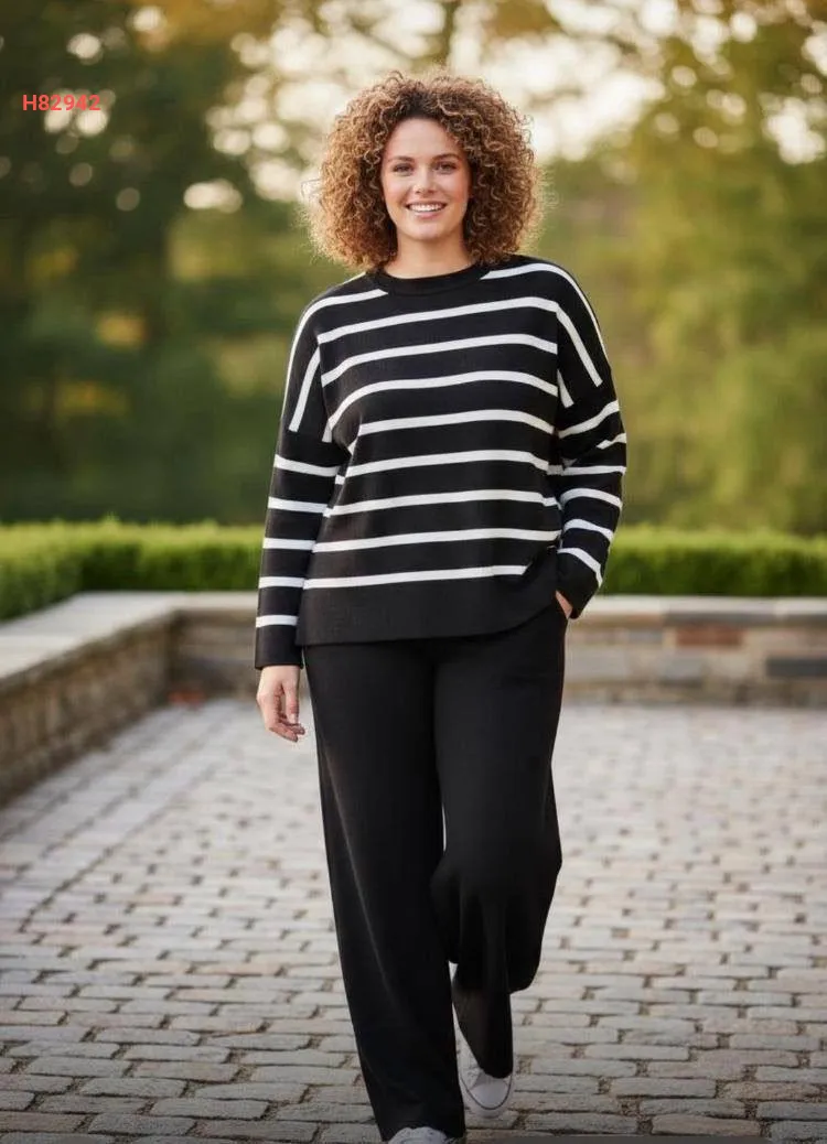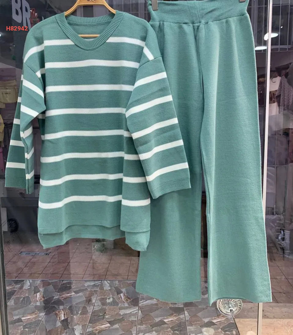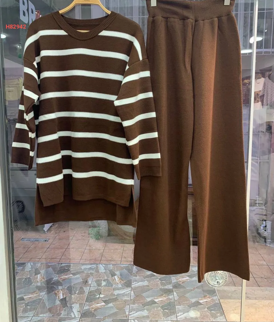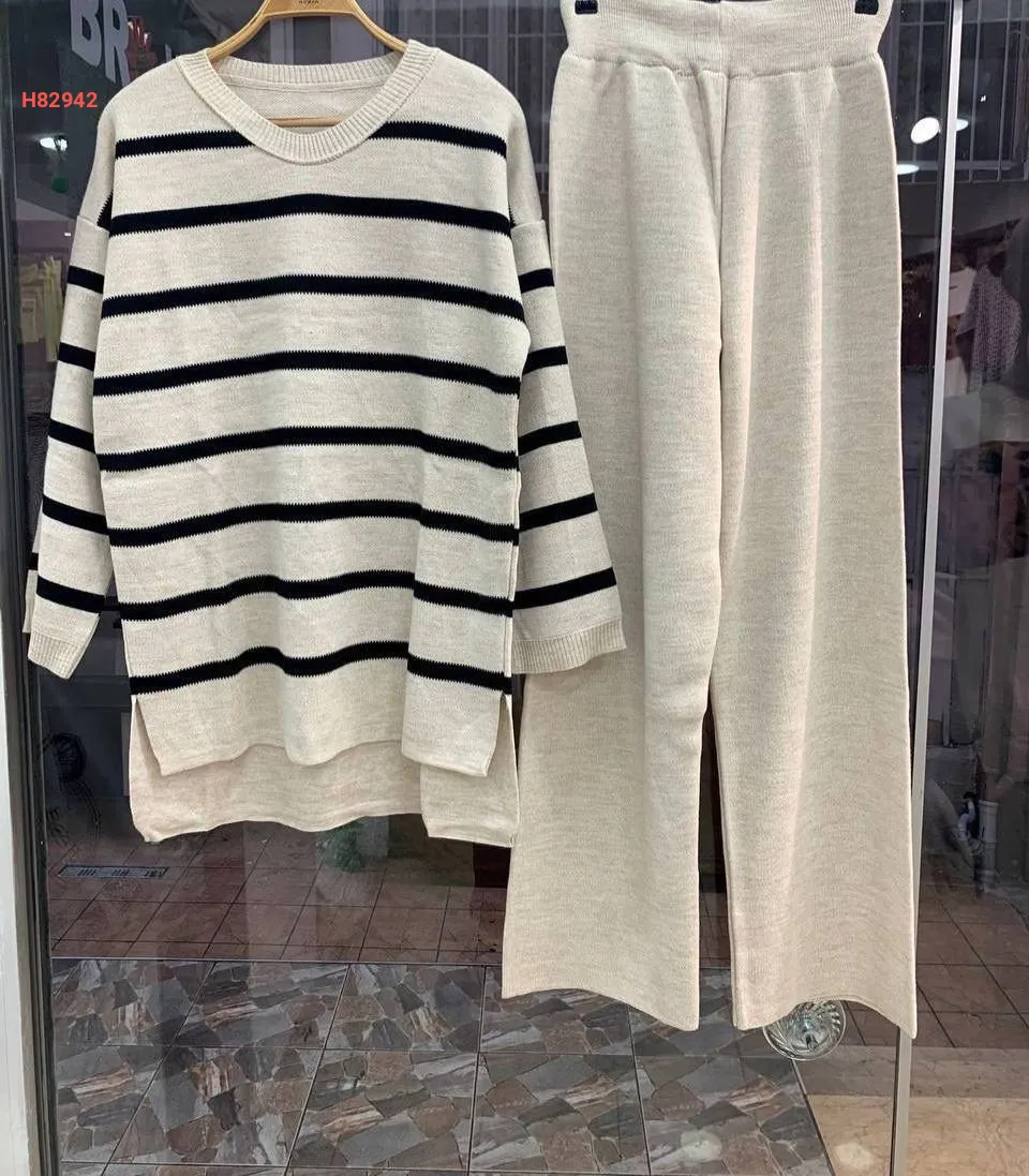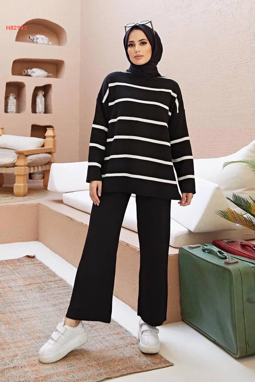 طقم بنطال تريكو وتونيك مخطط