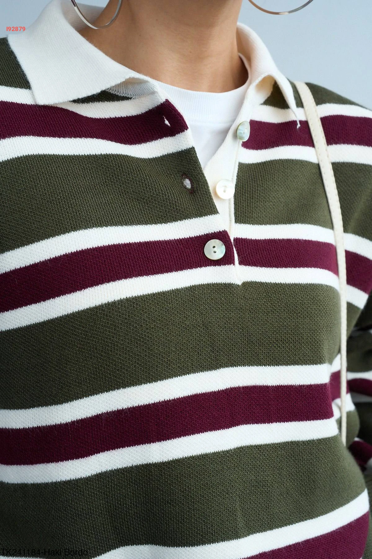 كنزة تريكو مخططة بأزرار