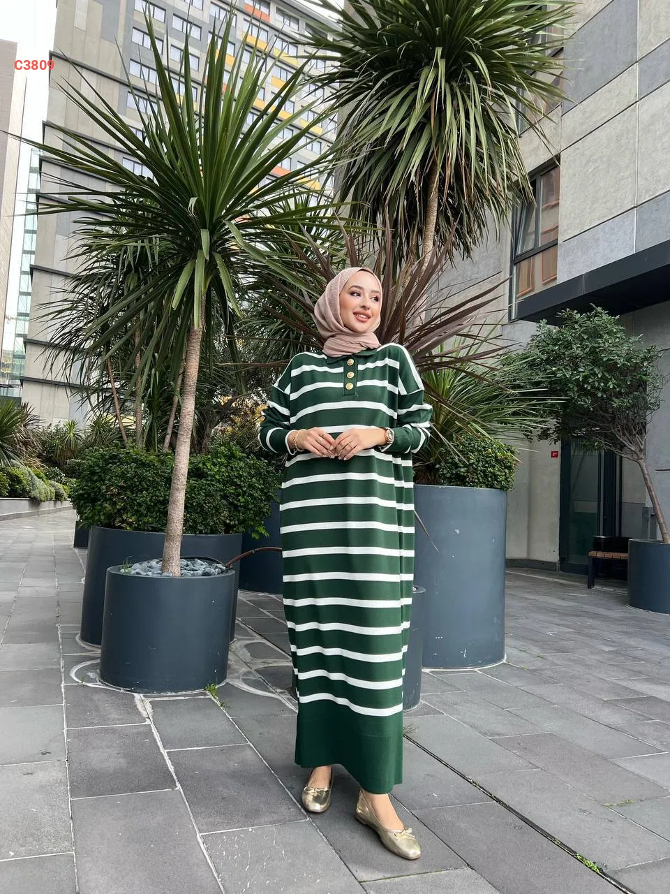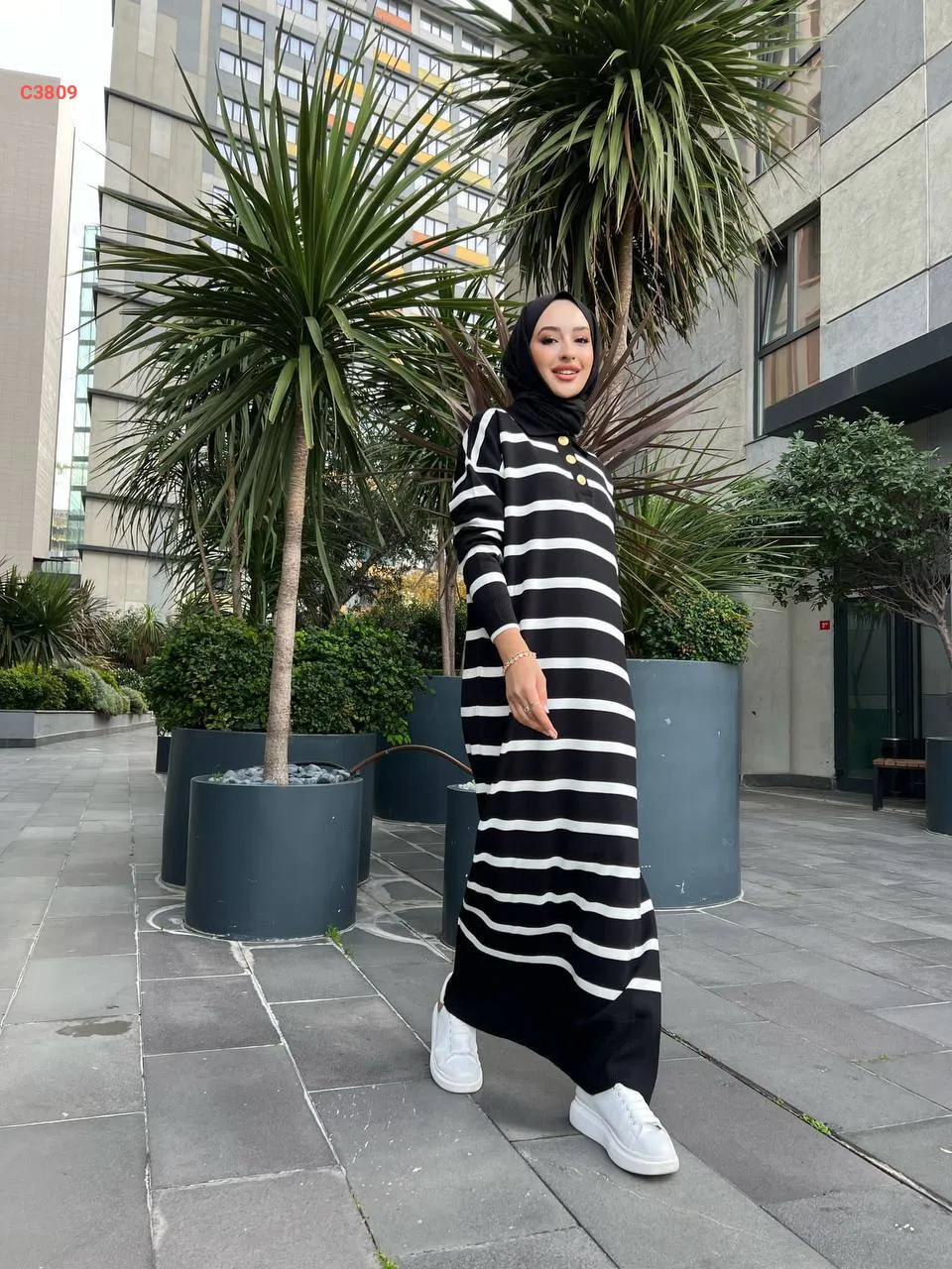 فستان تريكو طويل بأزرار