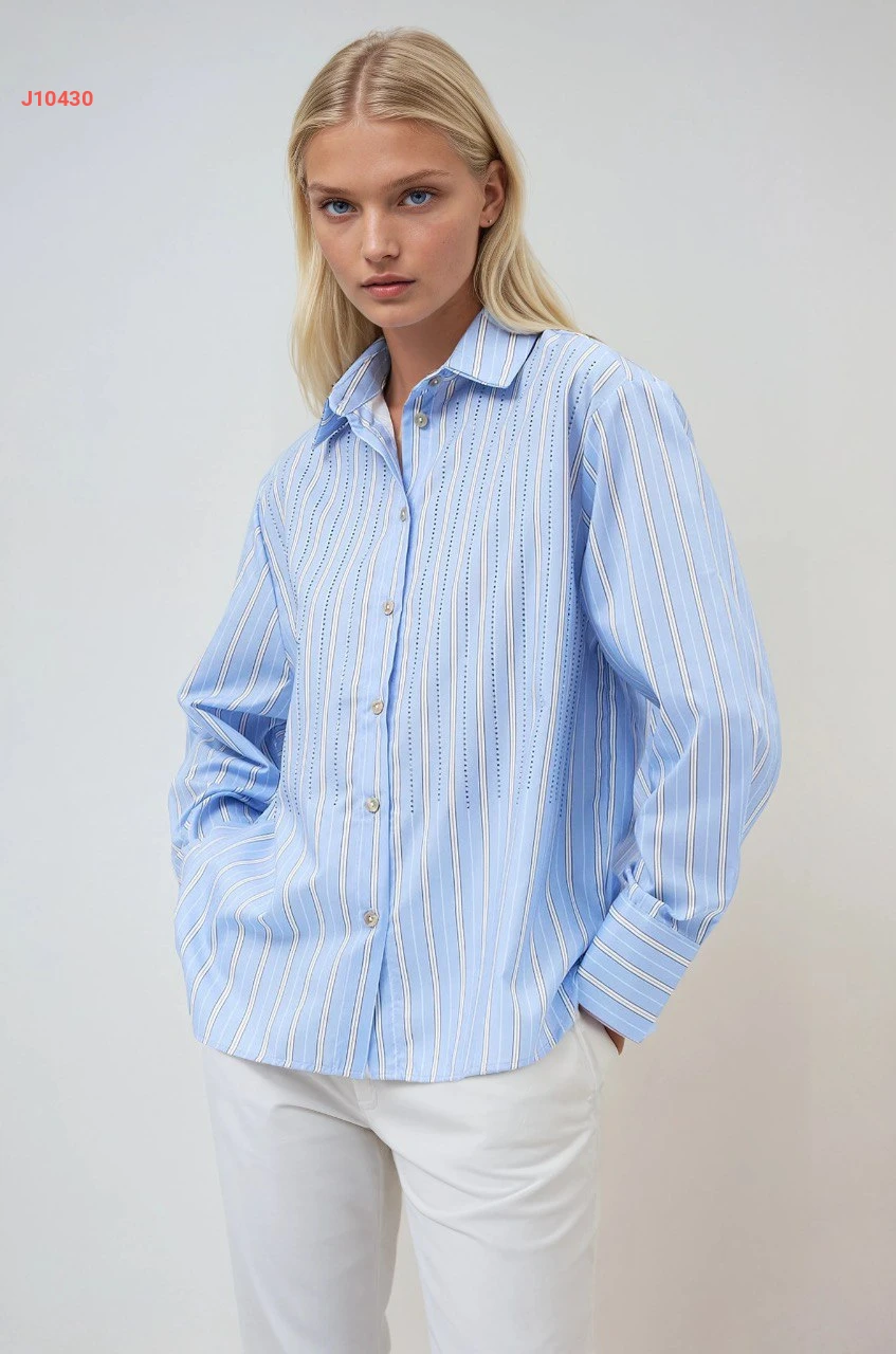 قميص كم طويل مقلم