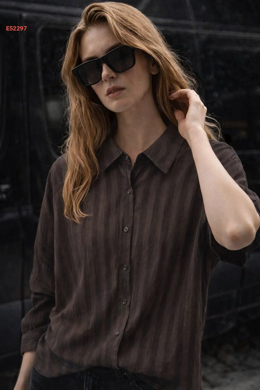قميص كم طويل مقلم