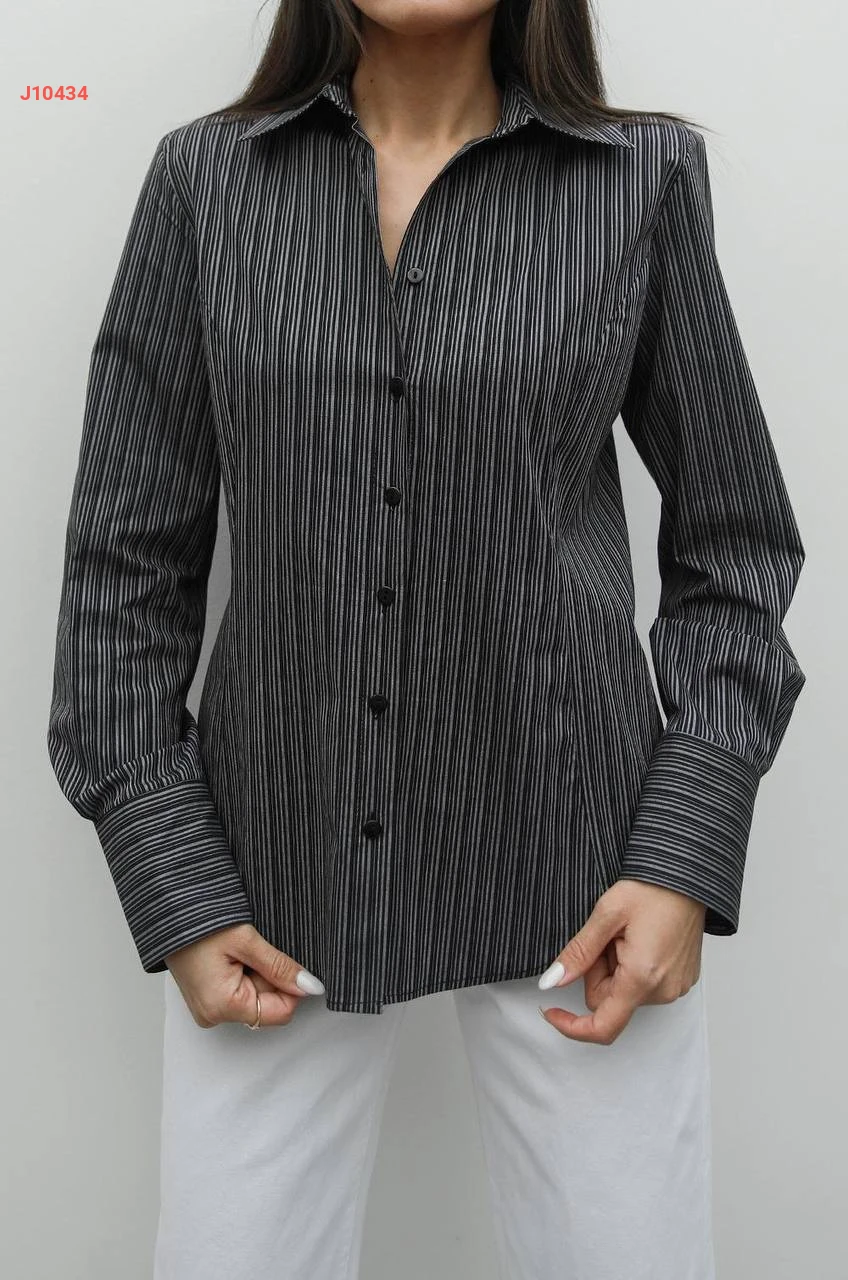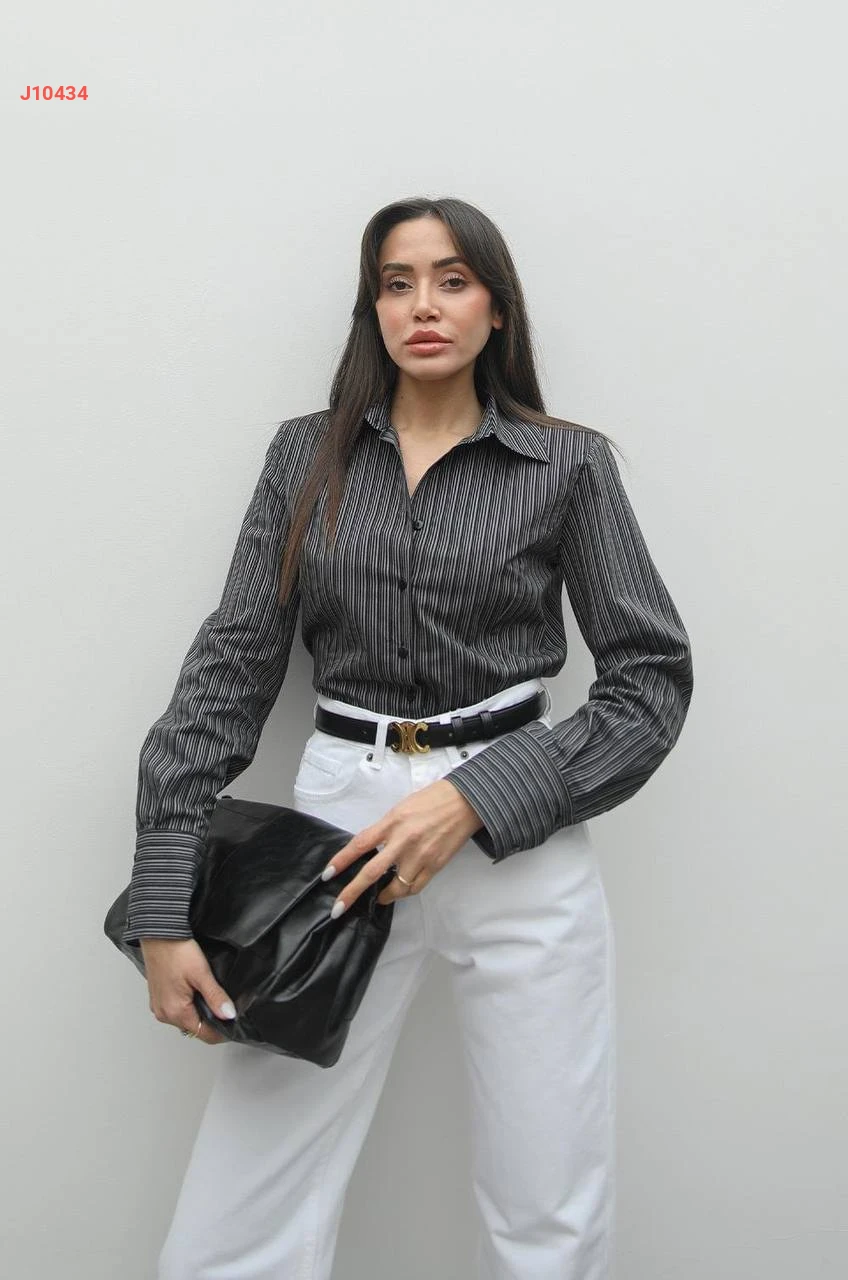 قميص كم طويل مقلم