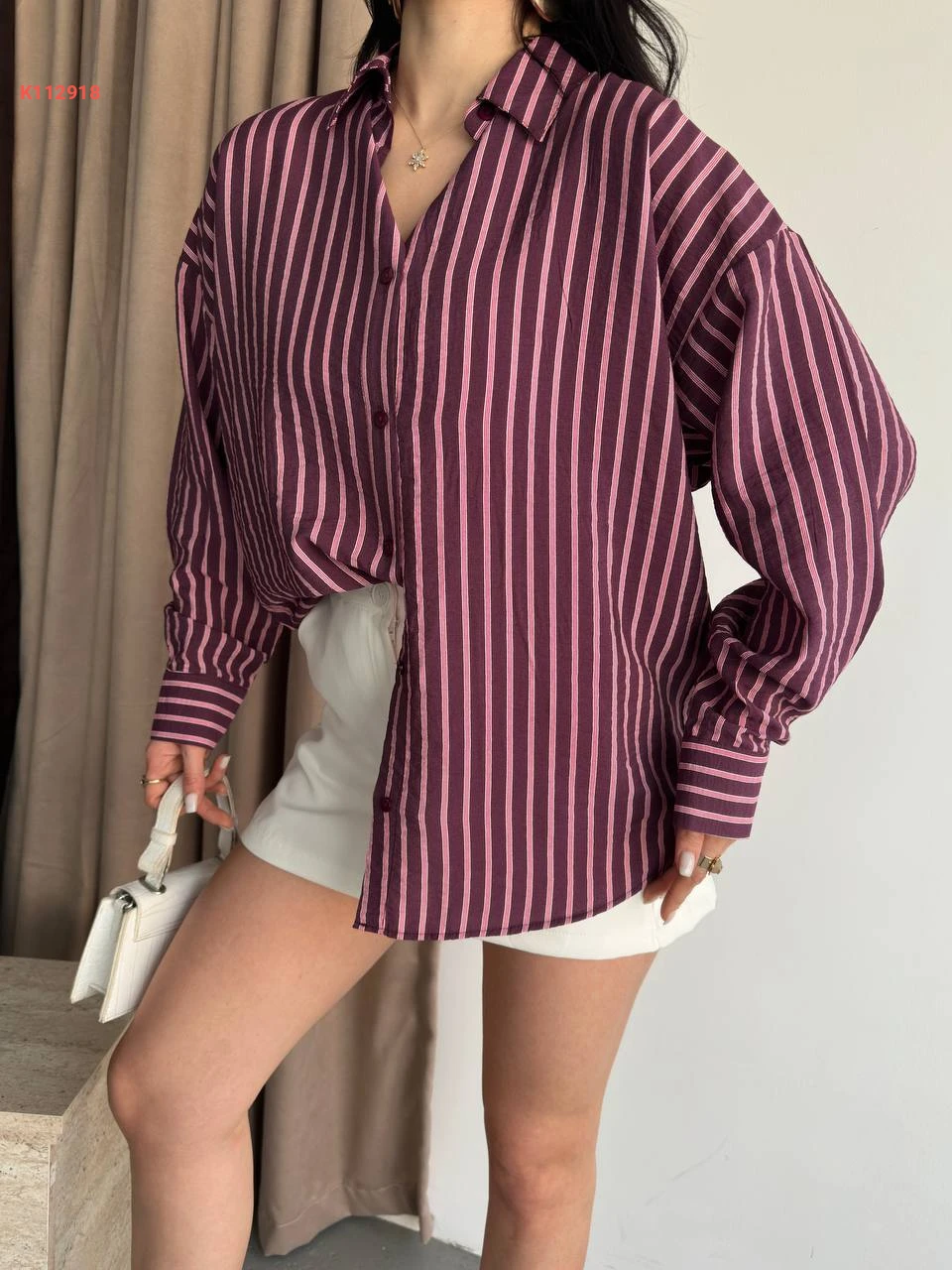 قميص كم طويل مقلم