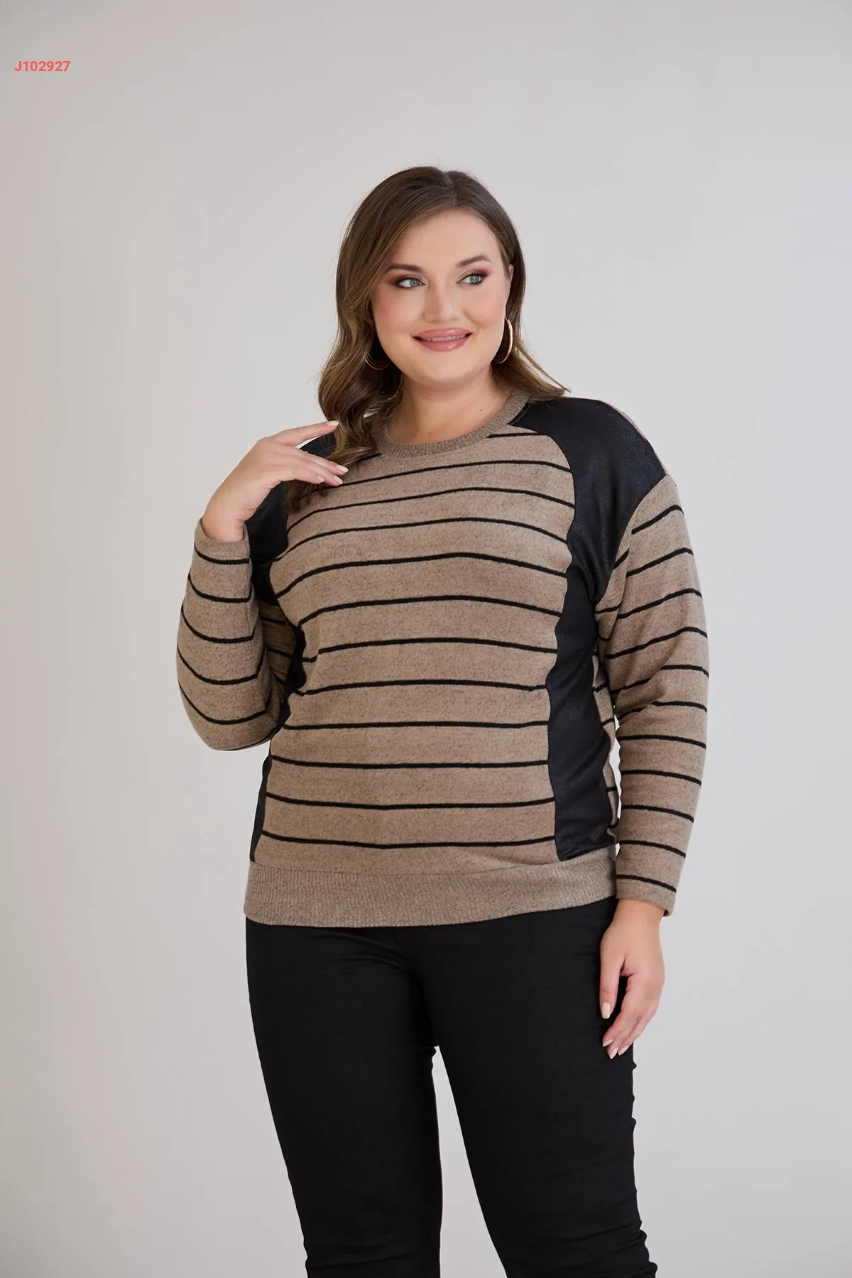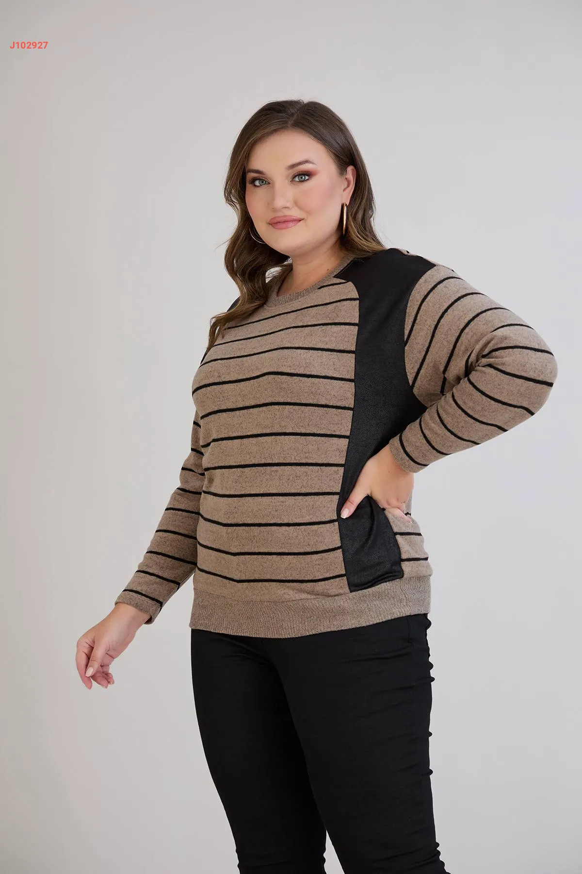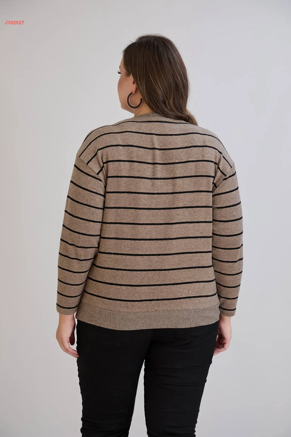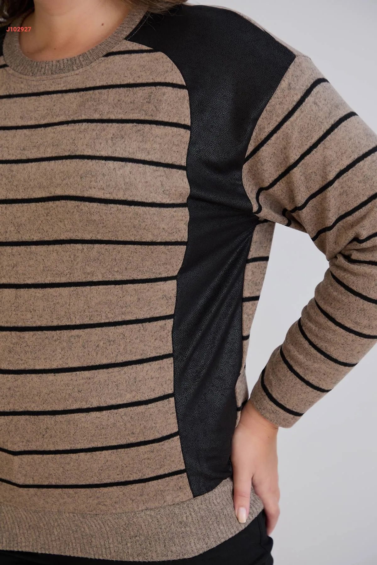 كنزة كم طويل مخططة مكلفة جلد