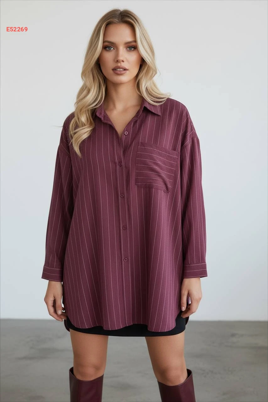 قميص مقلم واسع بجيب أمامي