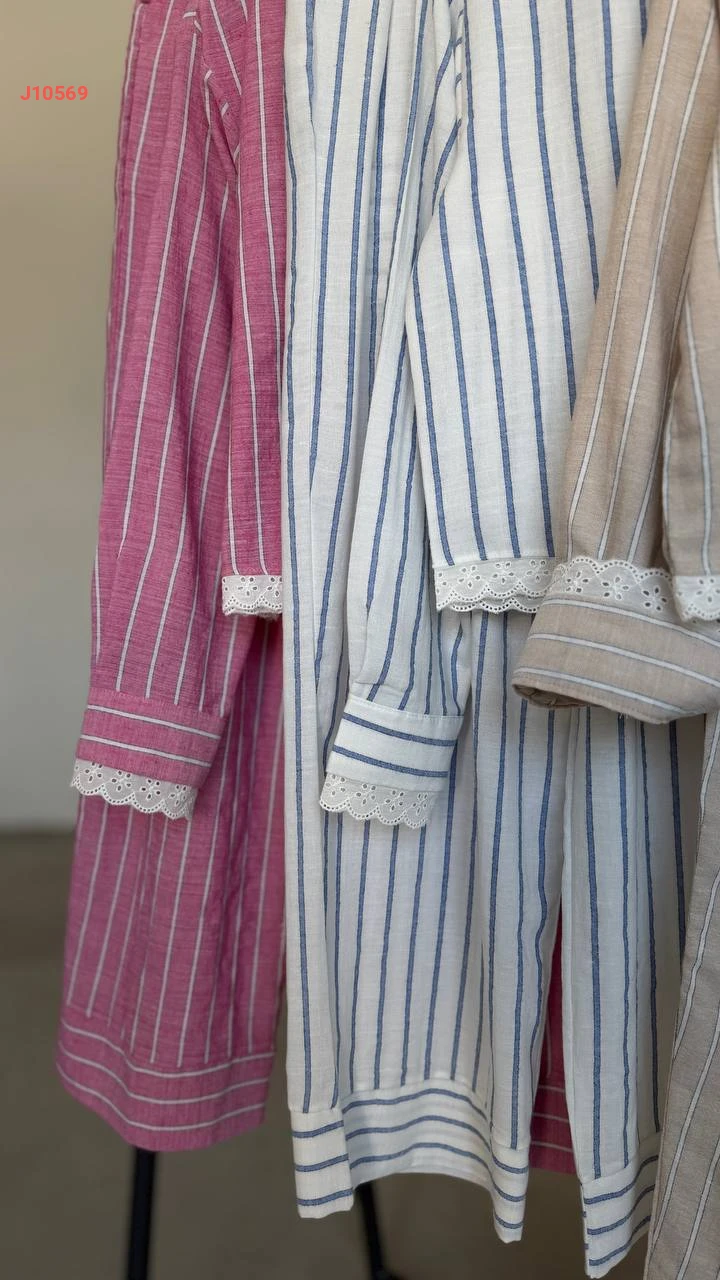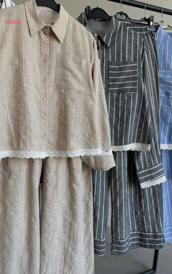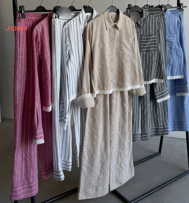 طقم بنطال مقلم مع قميص