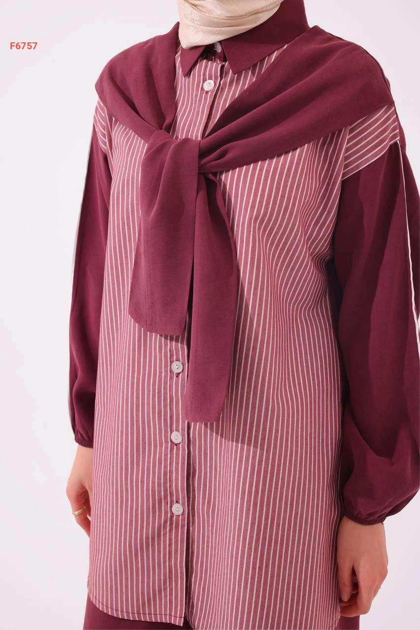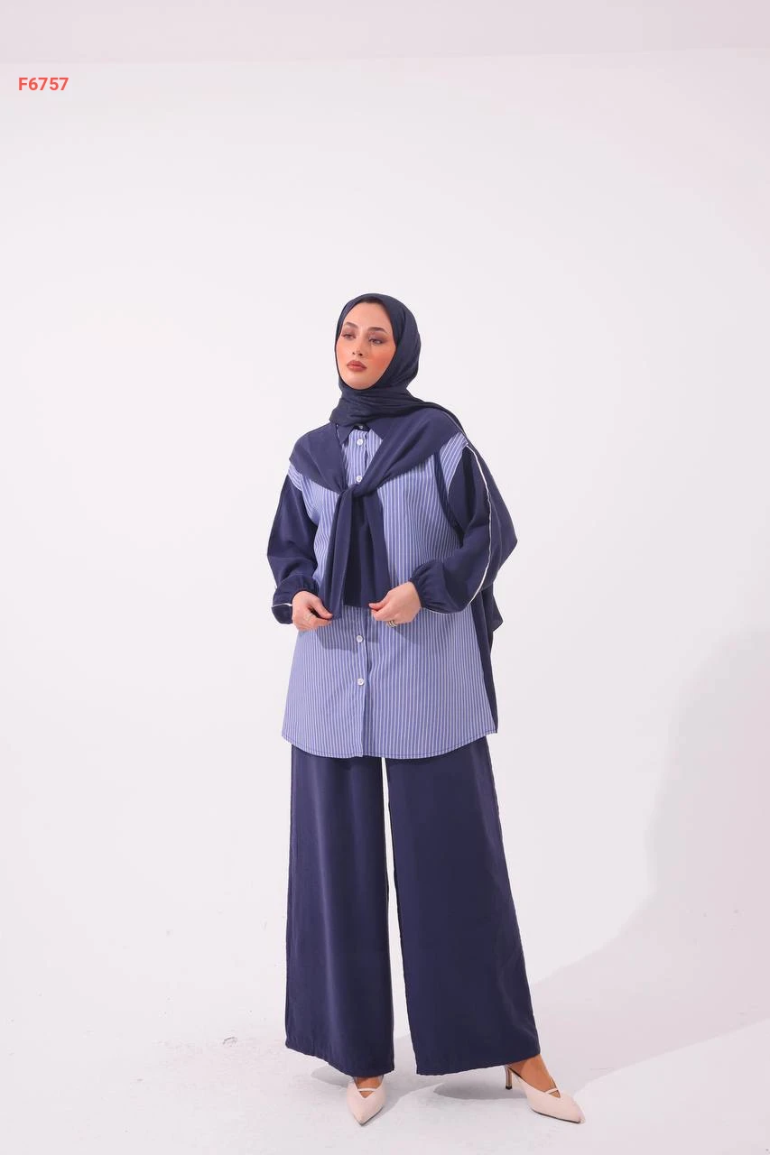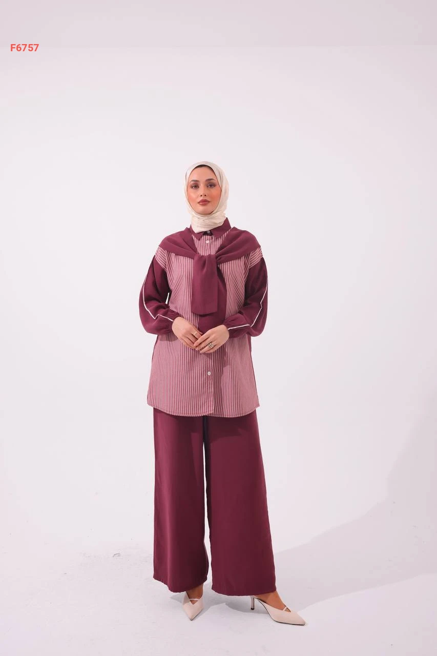طقم بنطال وقميص مقلم بفولار