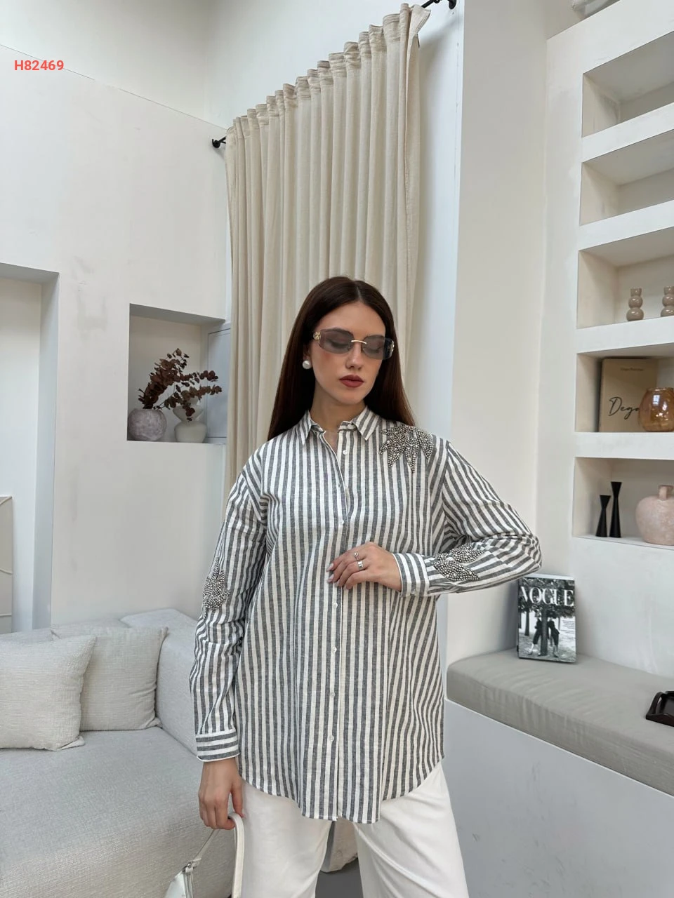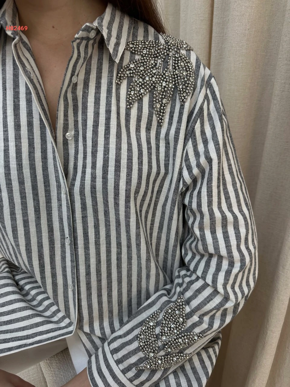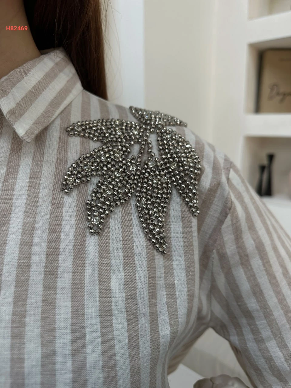 قميص مقلم مزين من الكتف والاكمام
