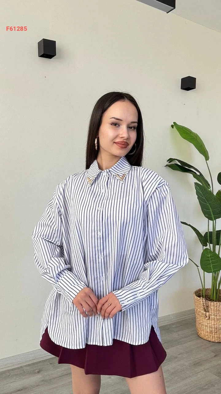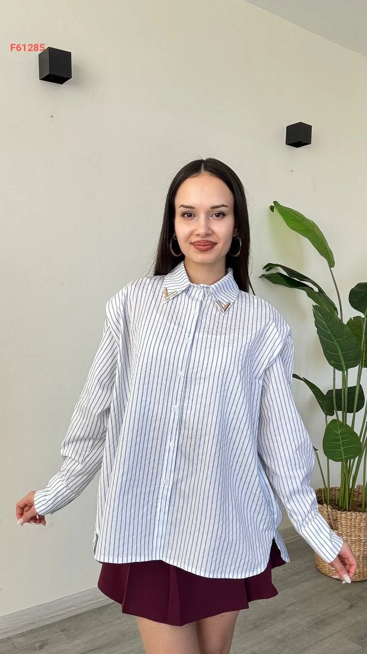قميص مقلم باكسسوار عالقبة