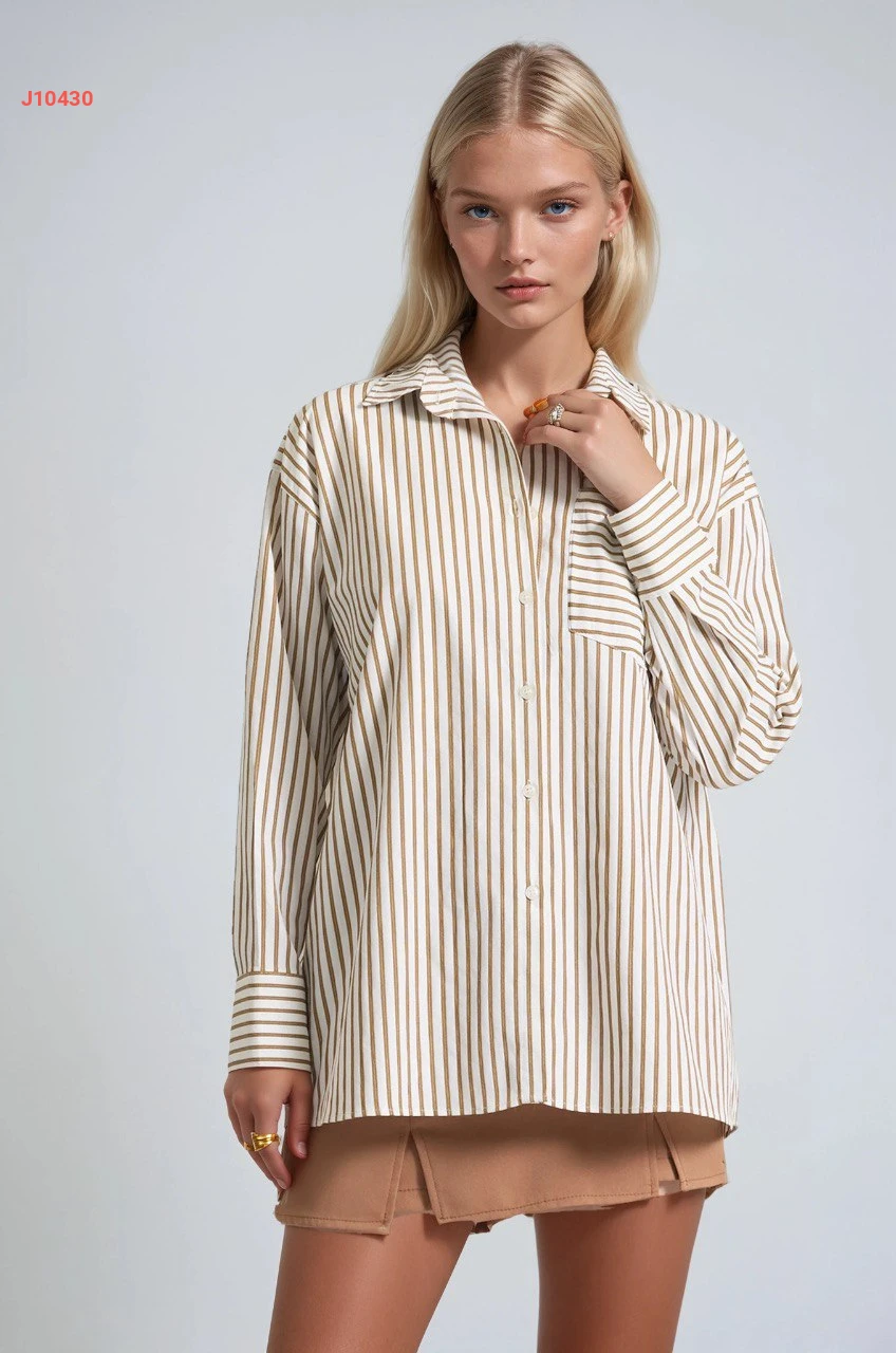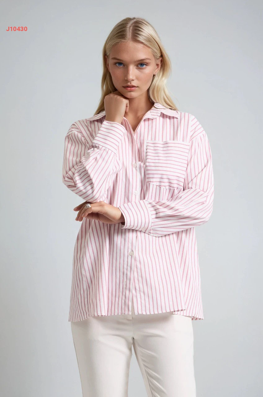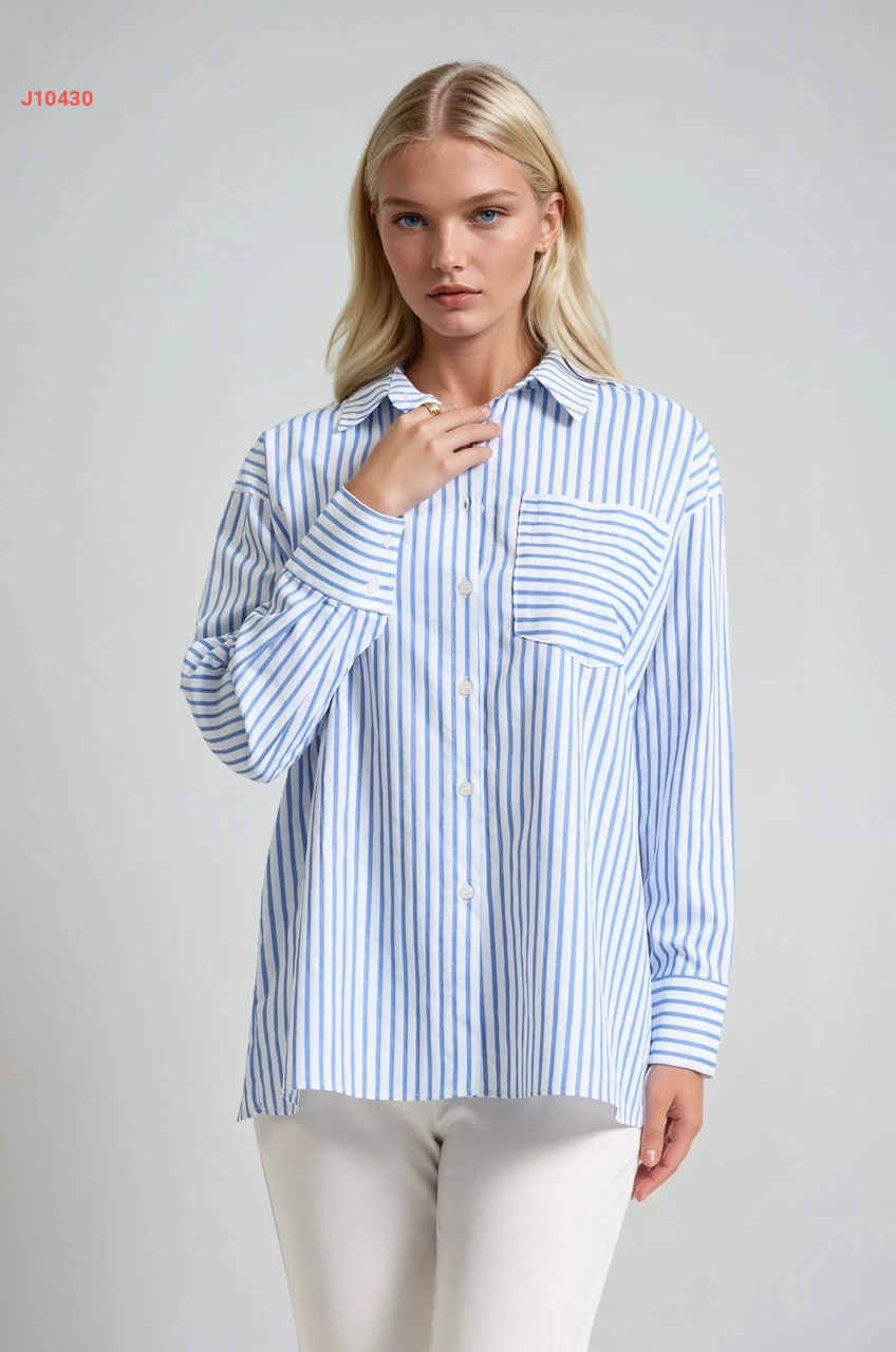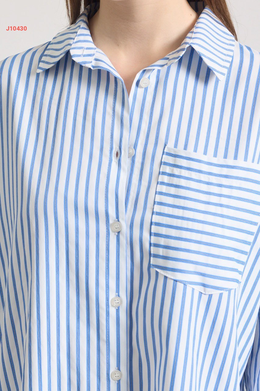قميص مقلم بجيب أمامي