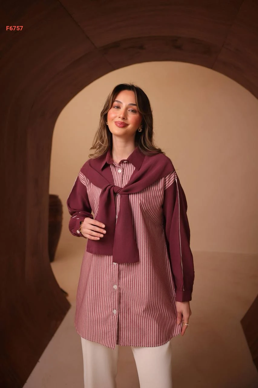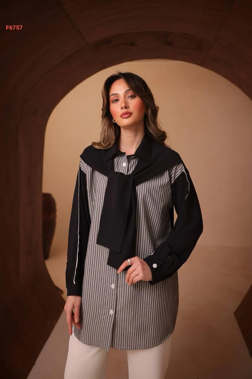 قميص مقلم مع فولار