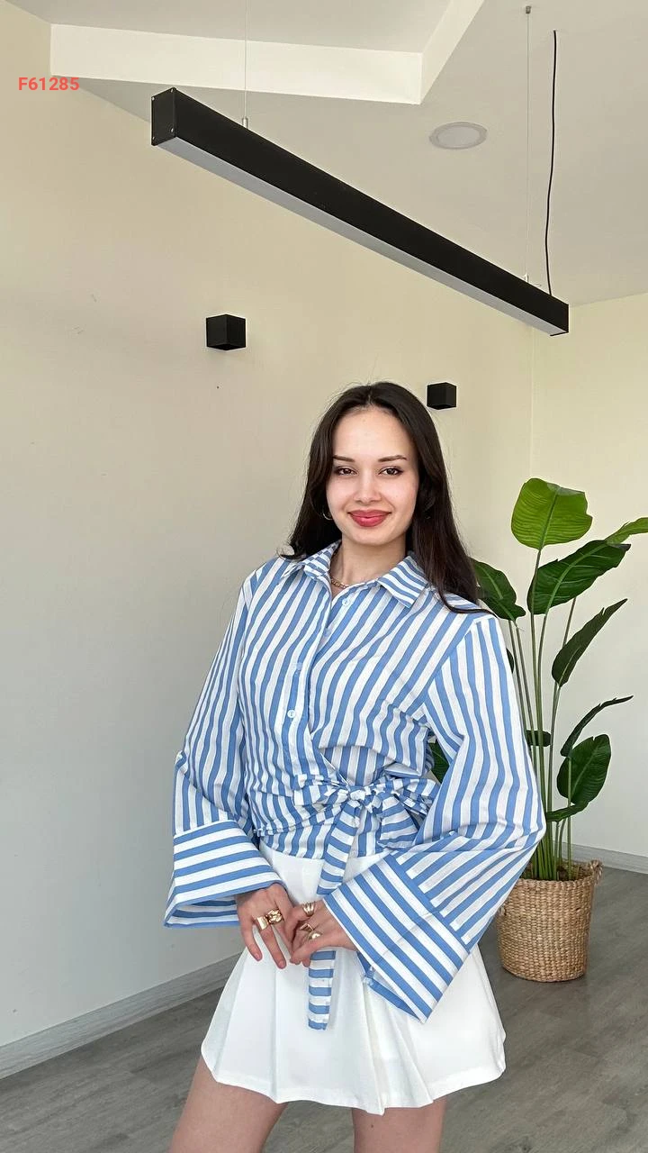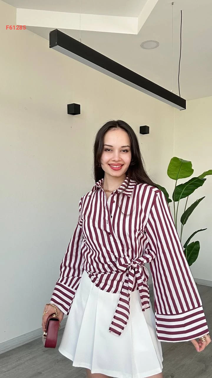 قميص مقلم بربطة جانبية