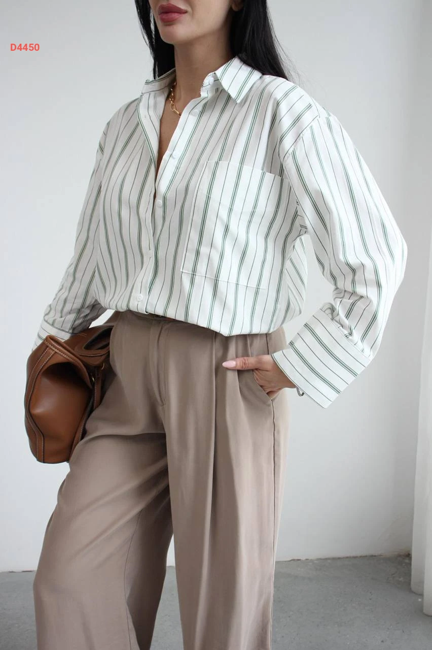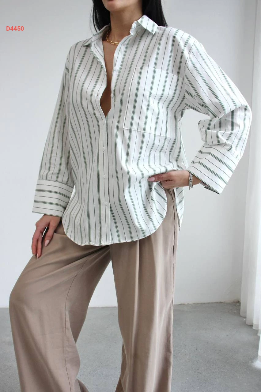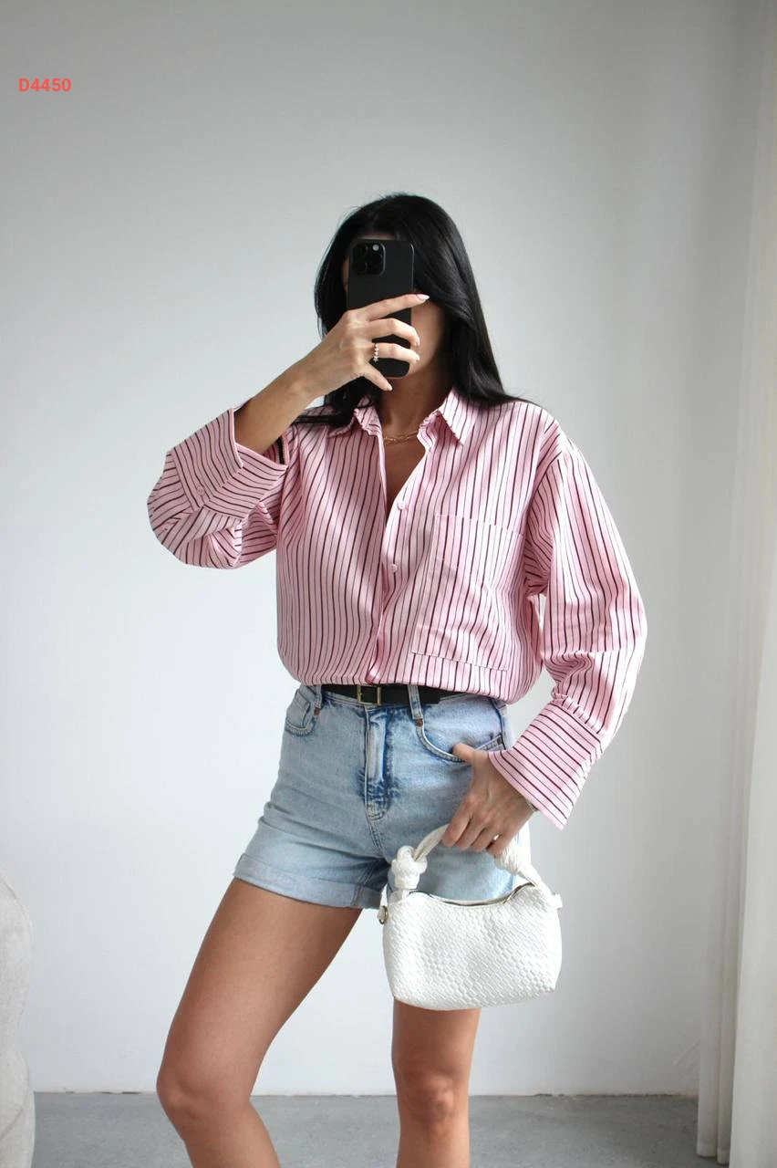 قميص مخطط بأزرار مع جيبة