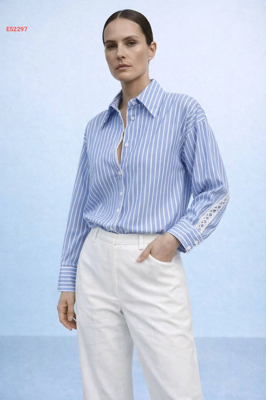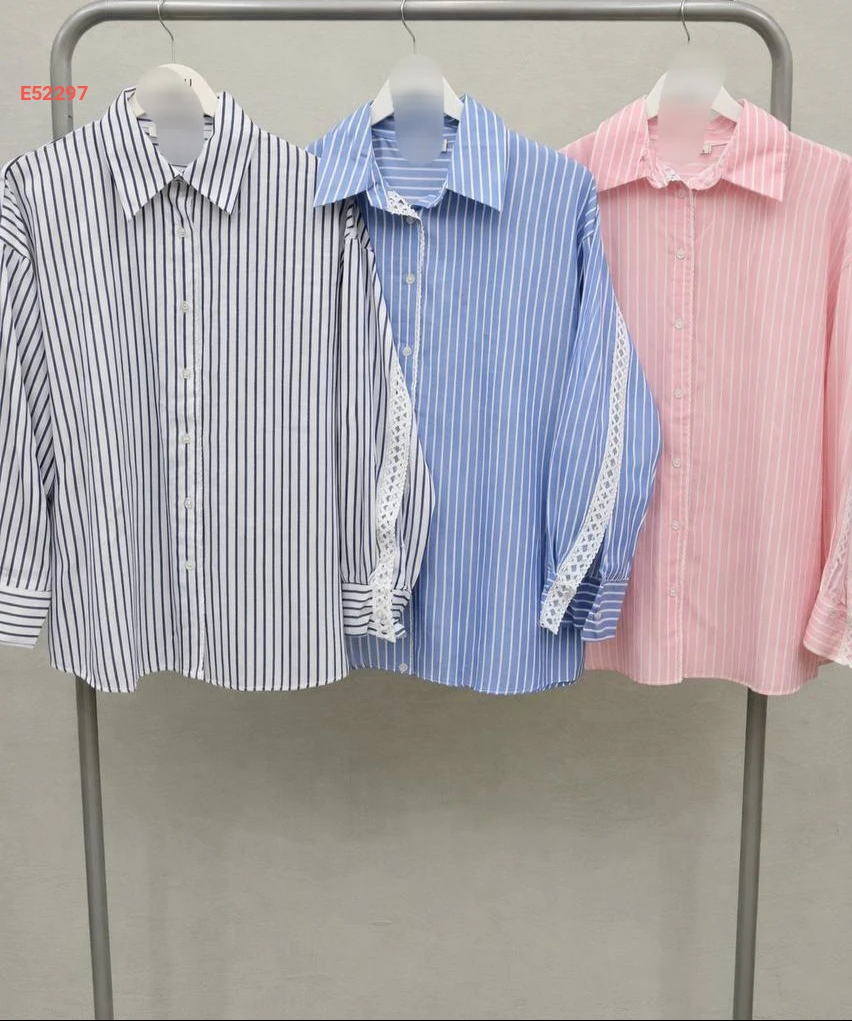 قميص مقلم مع تفاصيل مطرزة