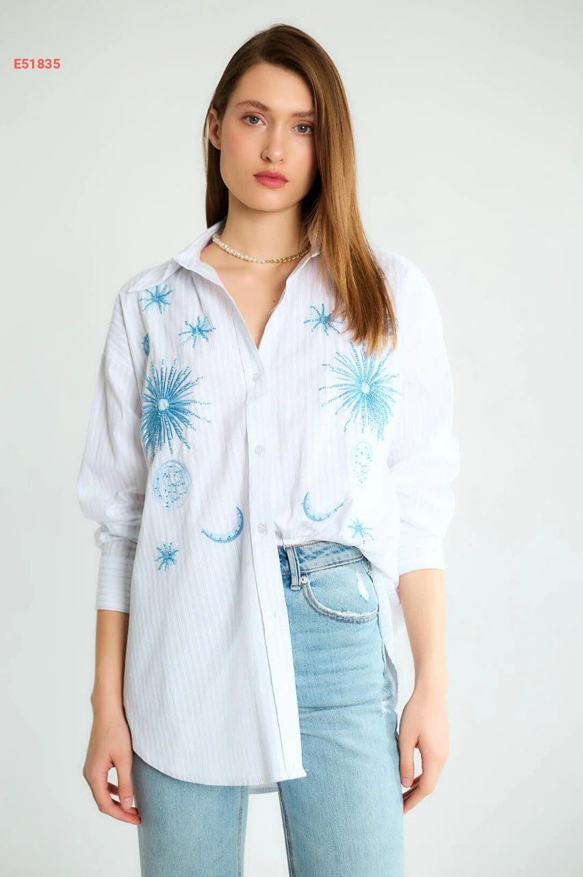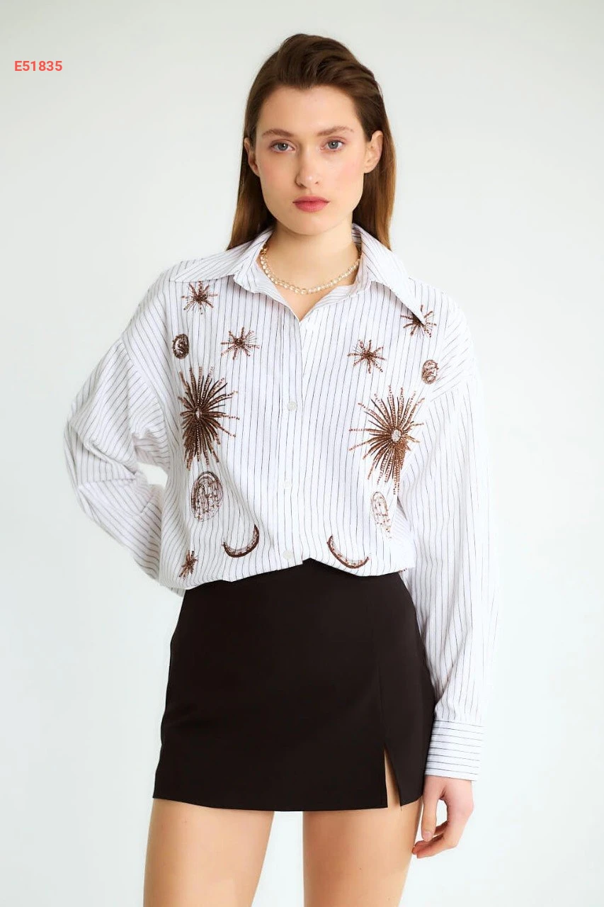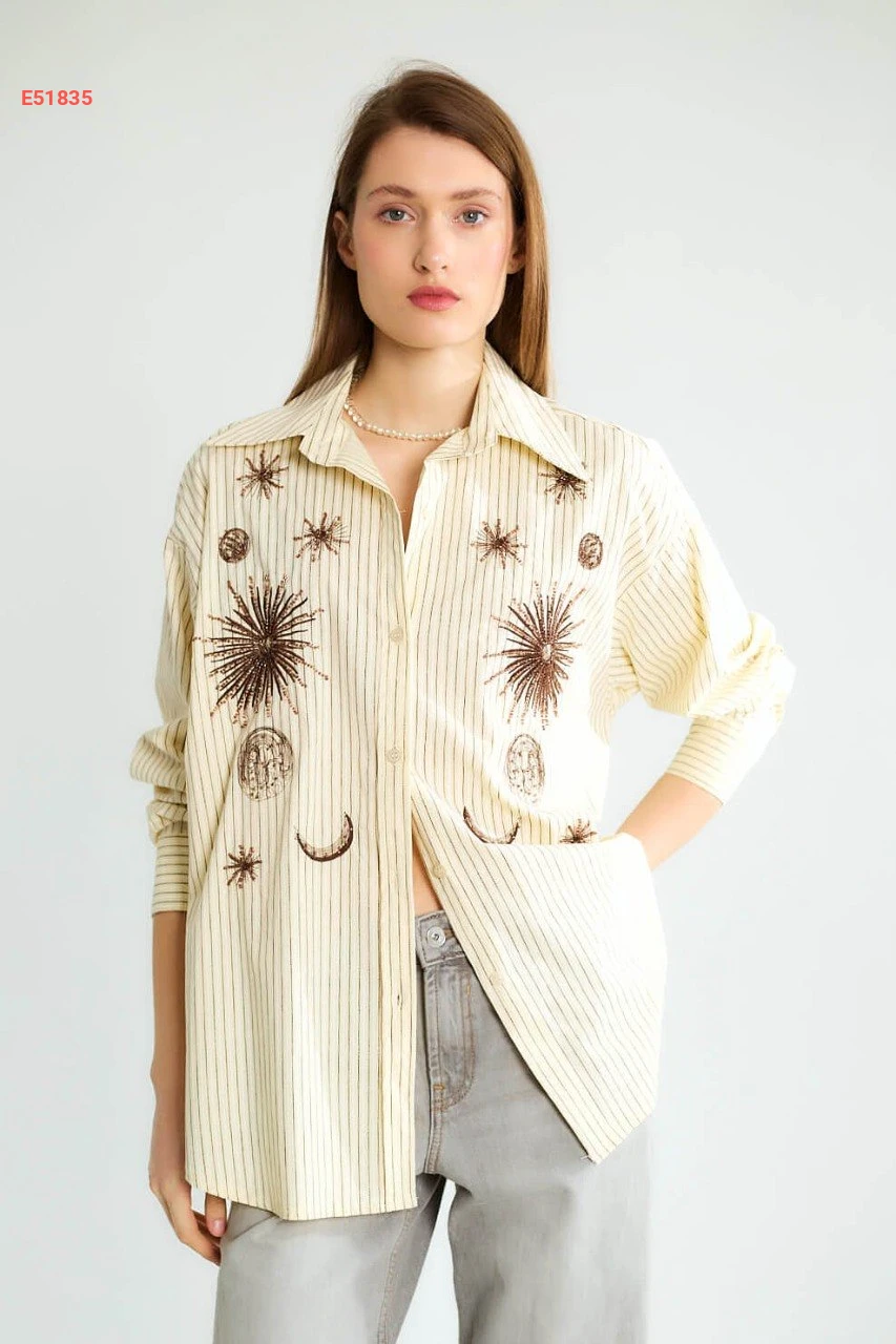 قميص مقلم مع تطريز
