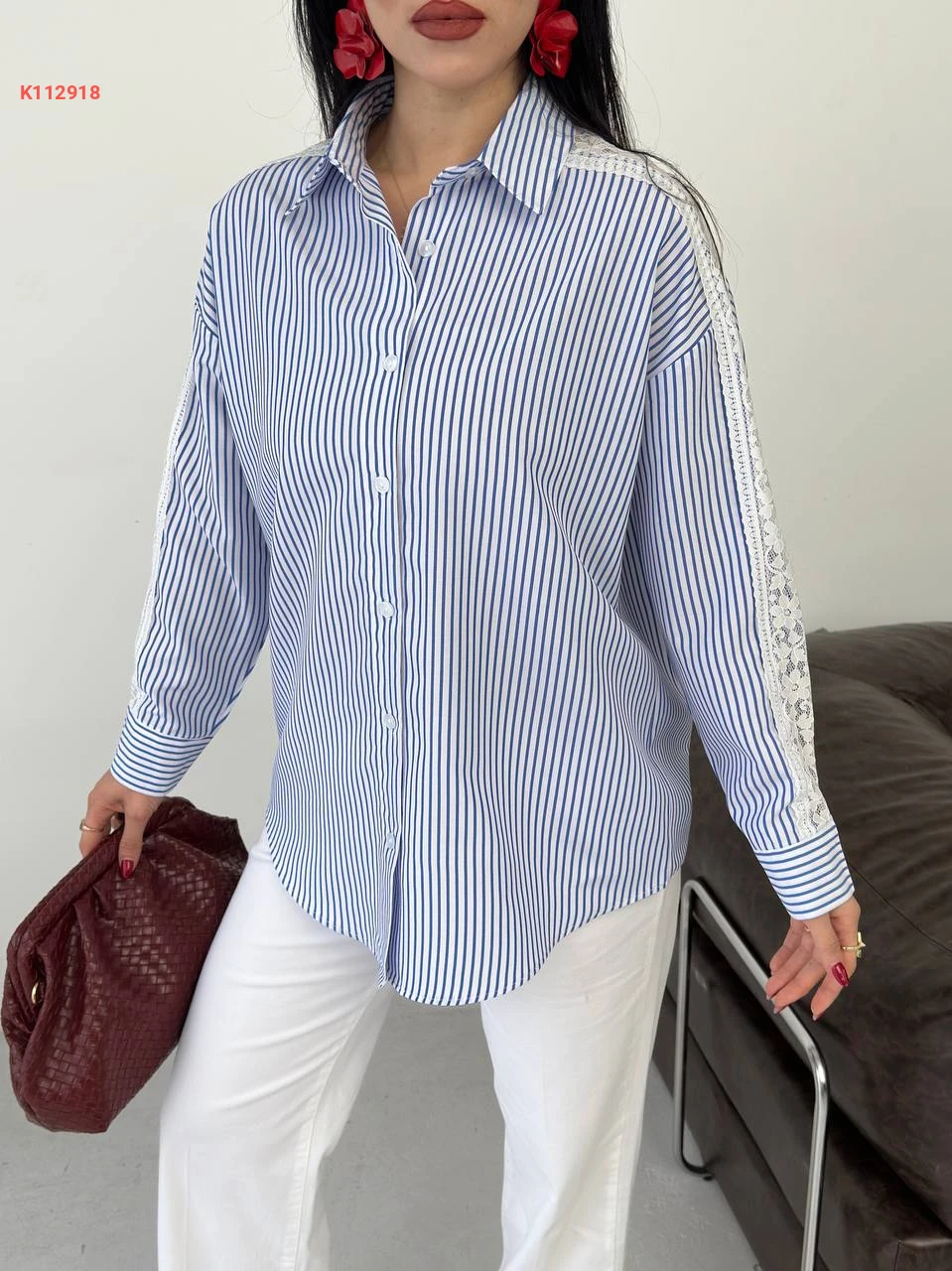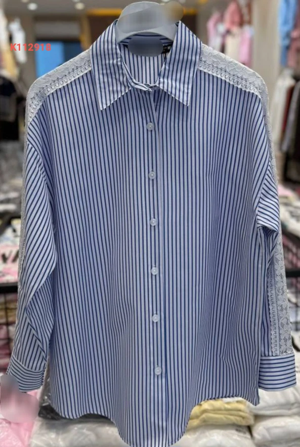 قميص مقلم بدانتيل عالأكمام